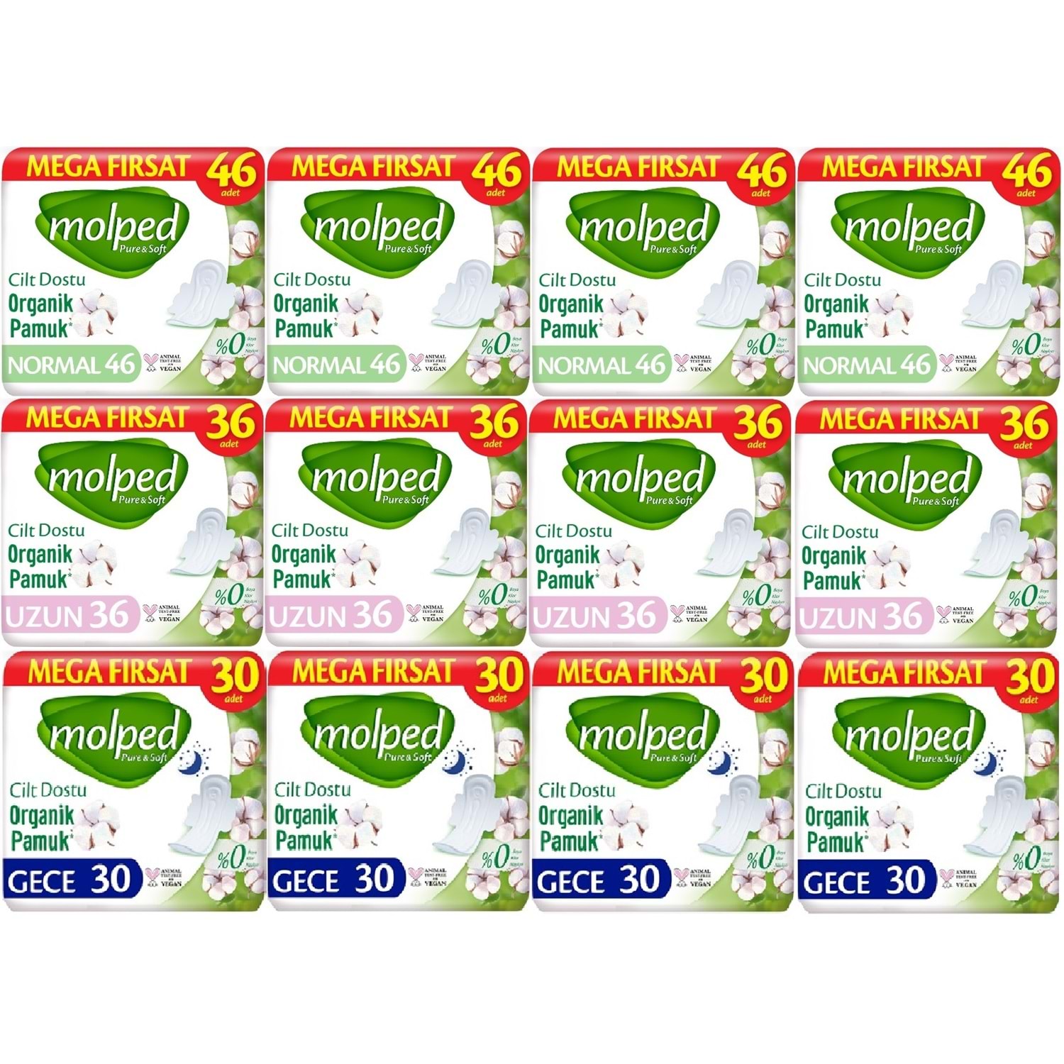 Molped Pure&Soft Hijyenik Ped Avantaj PK Normal 184 + Uzun 144 + Gece 120 Toplam : 448 Adet