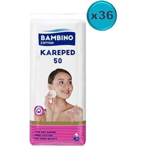 Bambino Cotton Kare Makyaj ve Bebek Temizleme Pamuğu 1800 Adet (Kare En-Boy 7CM) (36PK*50)