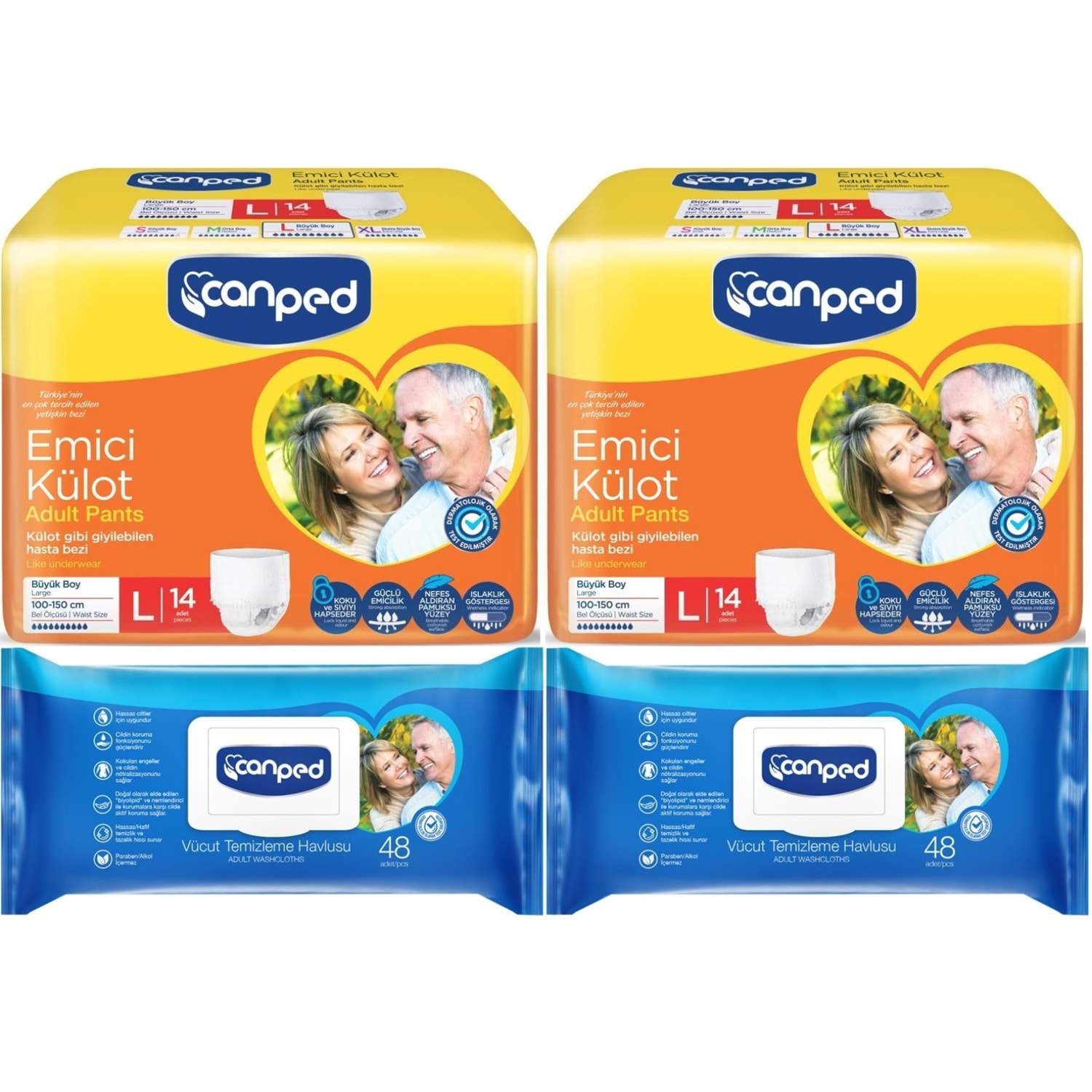 Canped Emici Külot Pants Hasta Yetişkin Bezi L - Büyük - Large 14 Adet - Temizleme Havlusu (4 Lü Set)