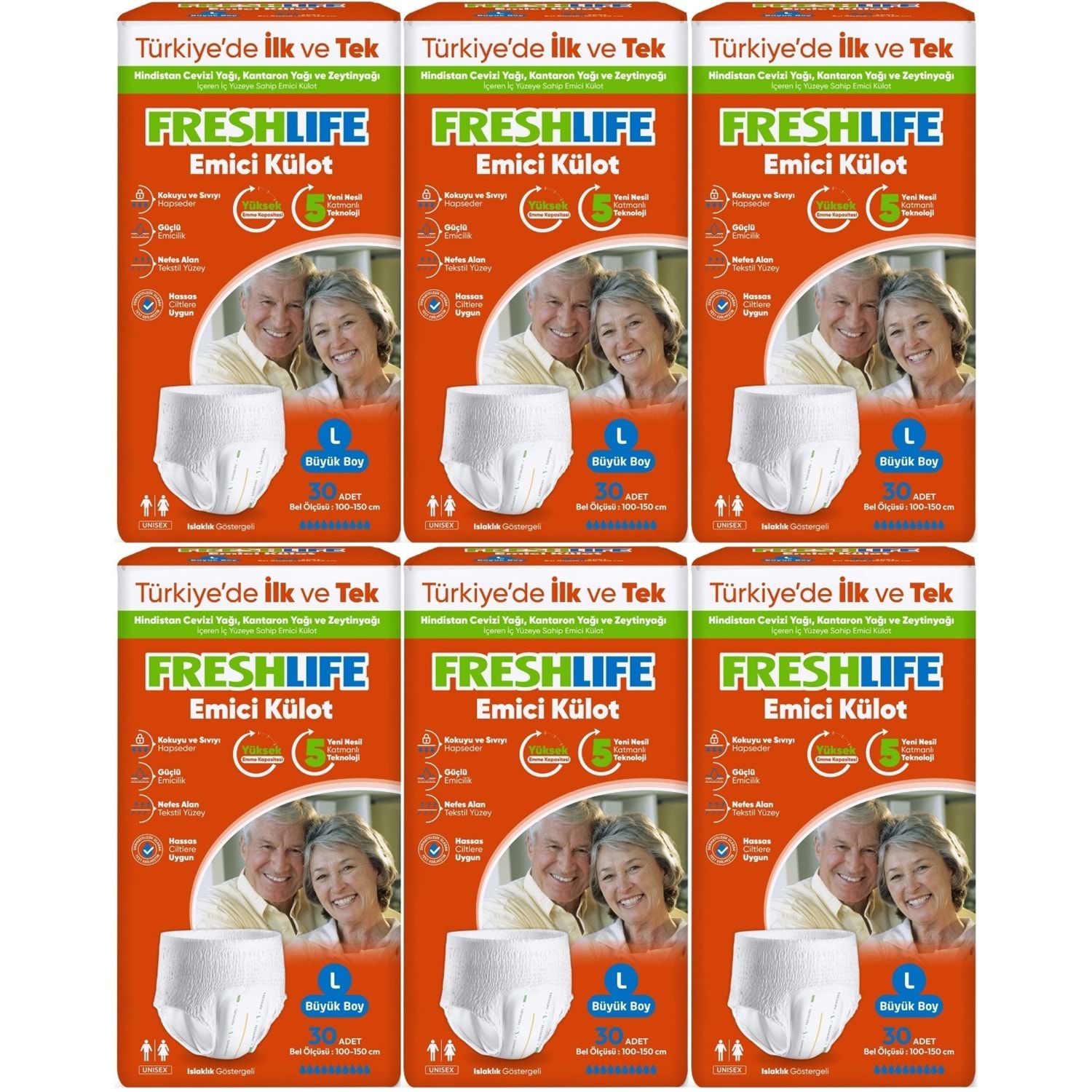 FreshLife Emici Külot Hasta Bezi Large - Büyük - L 180 Adet (6PK*30)