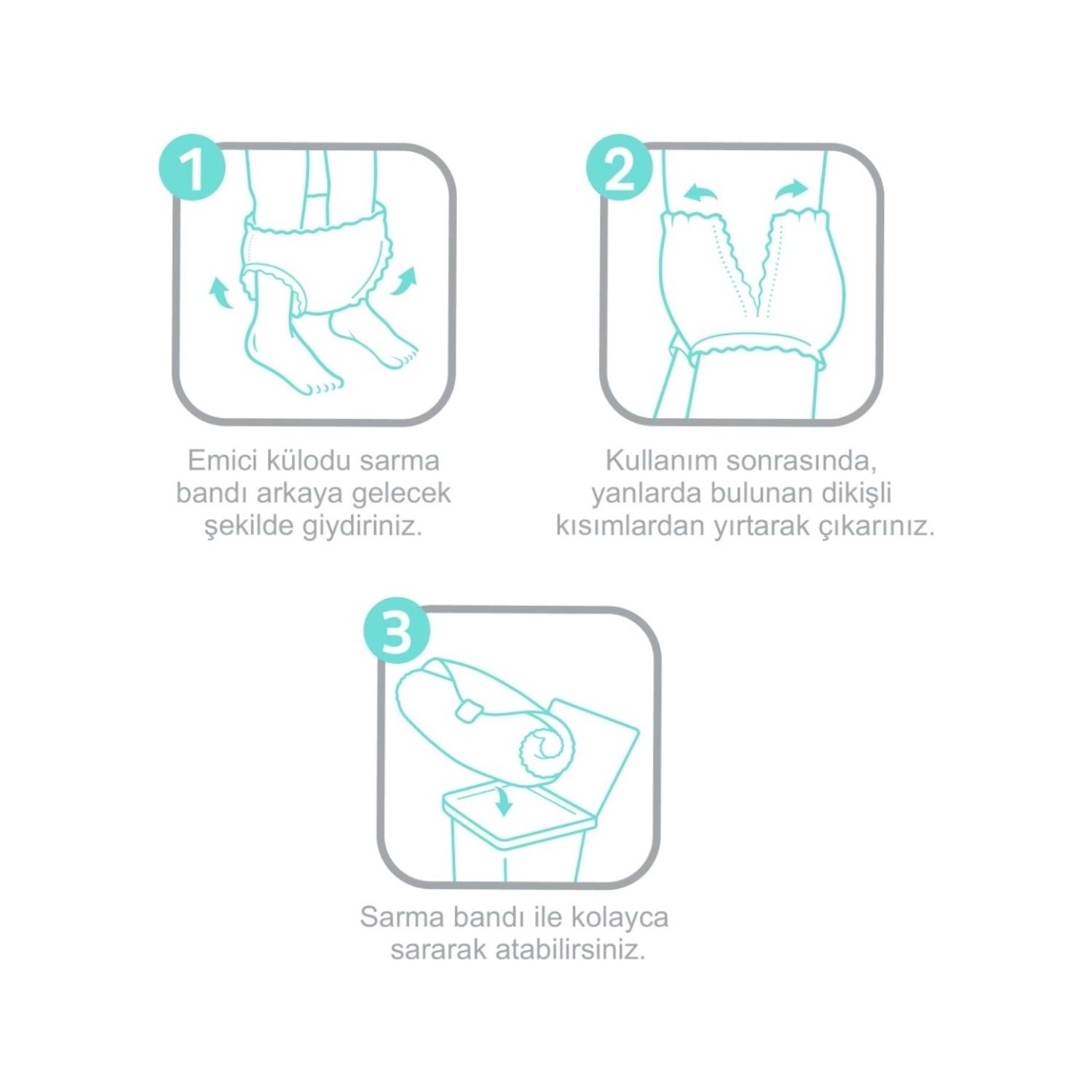 • Tekli paket halinde 30 adet emici külot içerir.