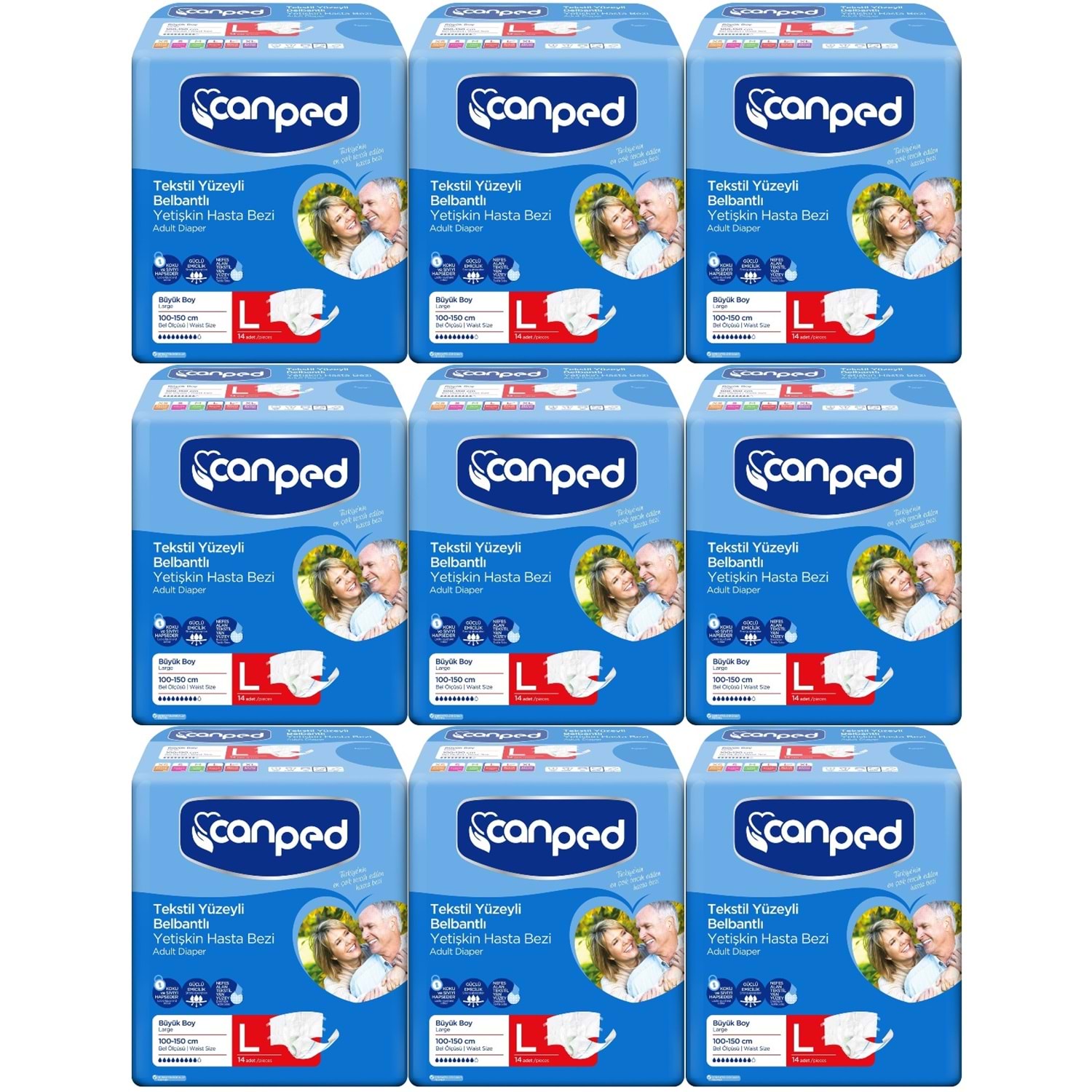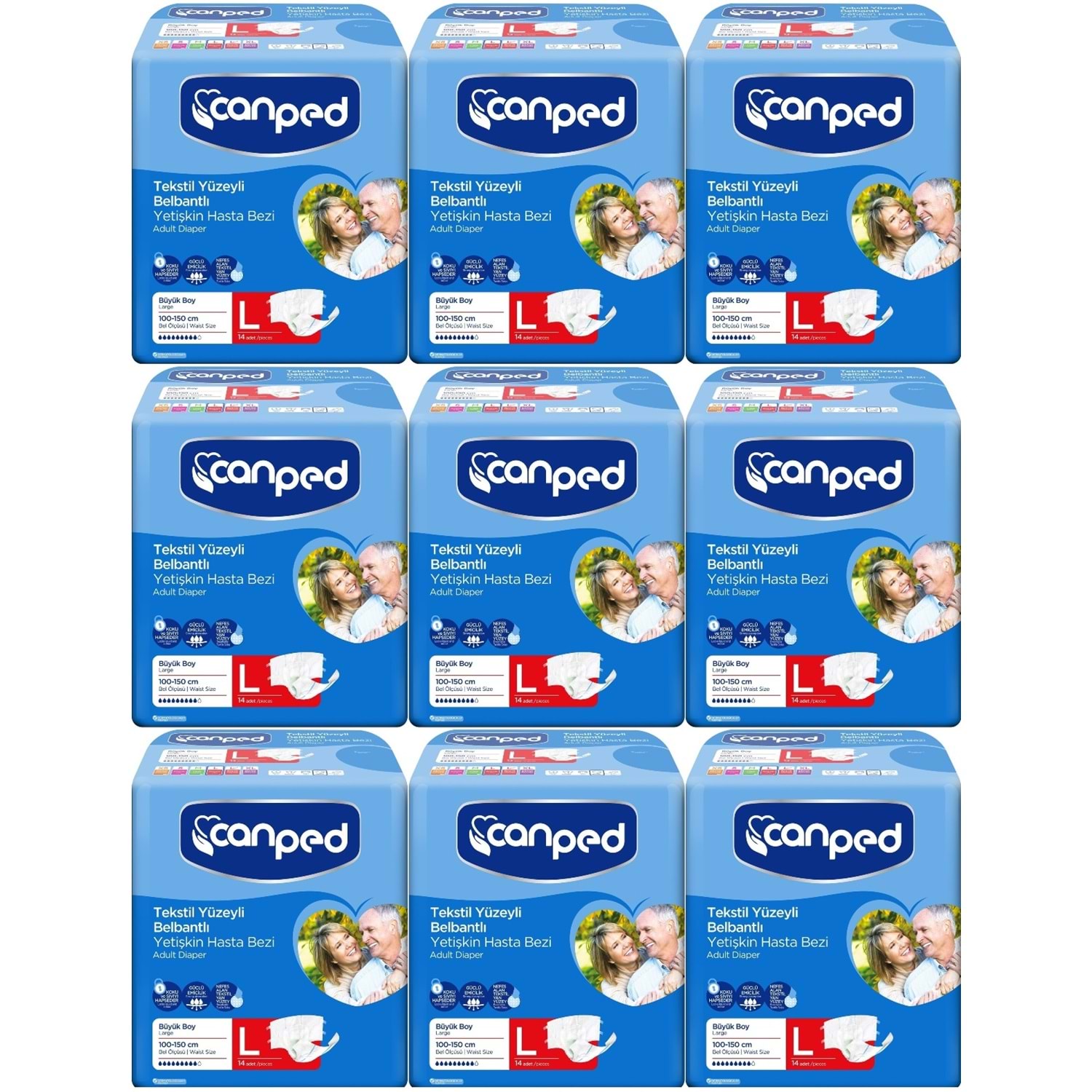 Canped Hasta Bezi Yetişkin Bel Bantlı Tekstil Yüzey L - Büyük - Large 126 Adet (9PK*14)