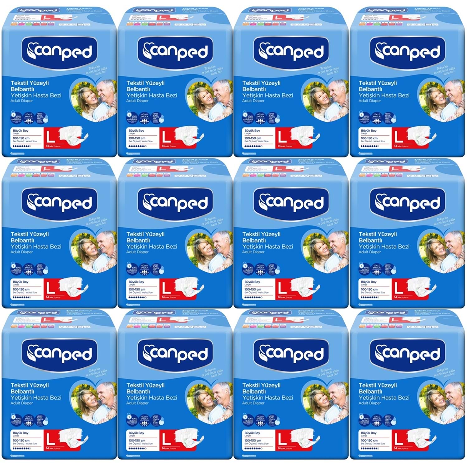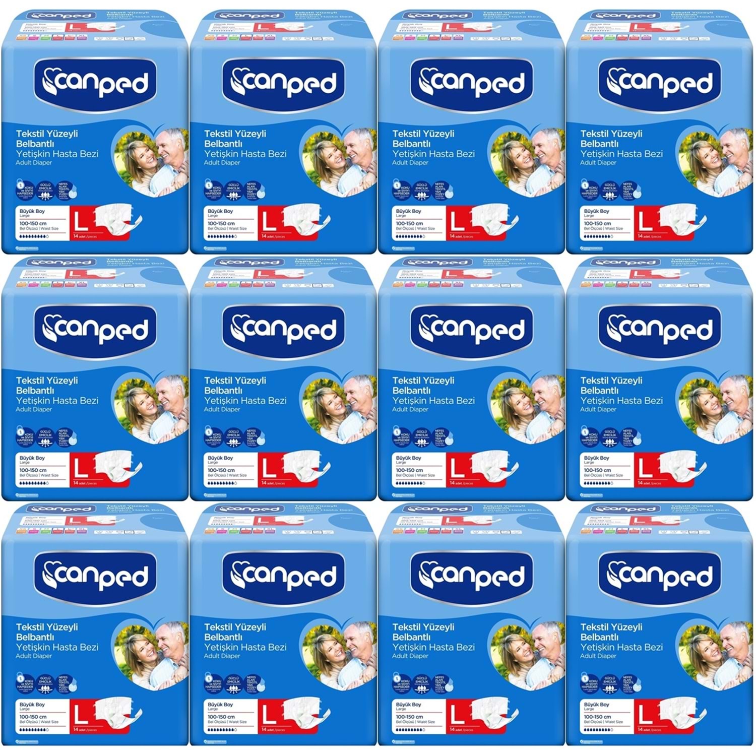 Canped Hasta Bezi Yetişkin Bel Bantlı Tekstil Yüzey L - Büyük - Large 168 Adet (12PK*14)