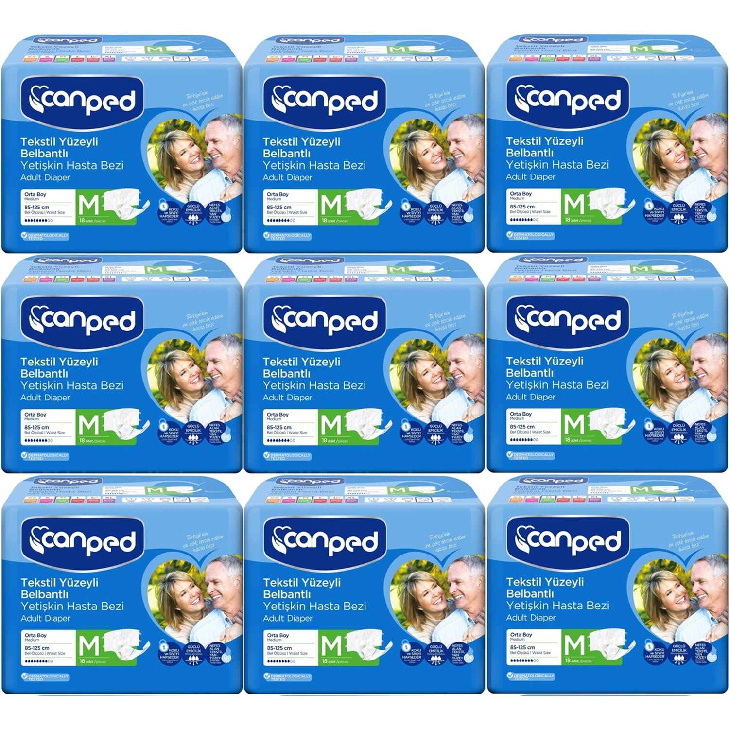 Canped Hasta Bezi Yetişkin Bel Bantlı Tekstil Yüzey M - Orta - Medium 162 (9PK*18)