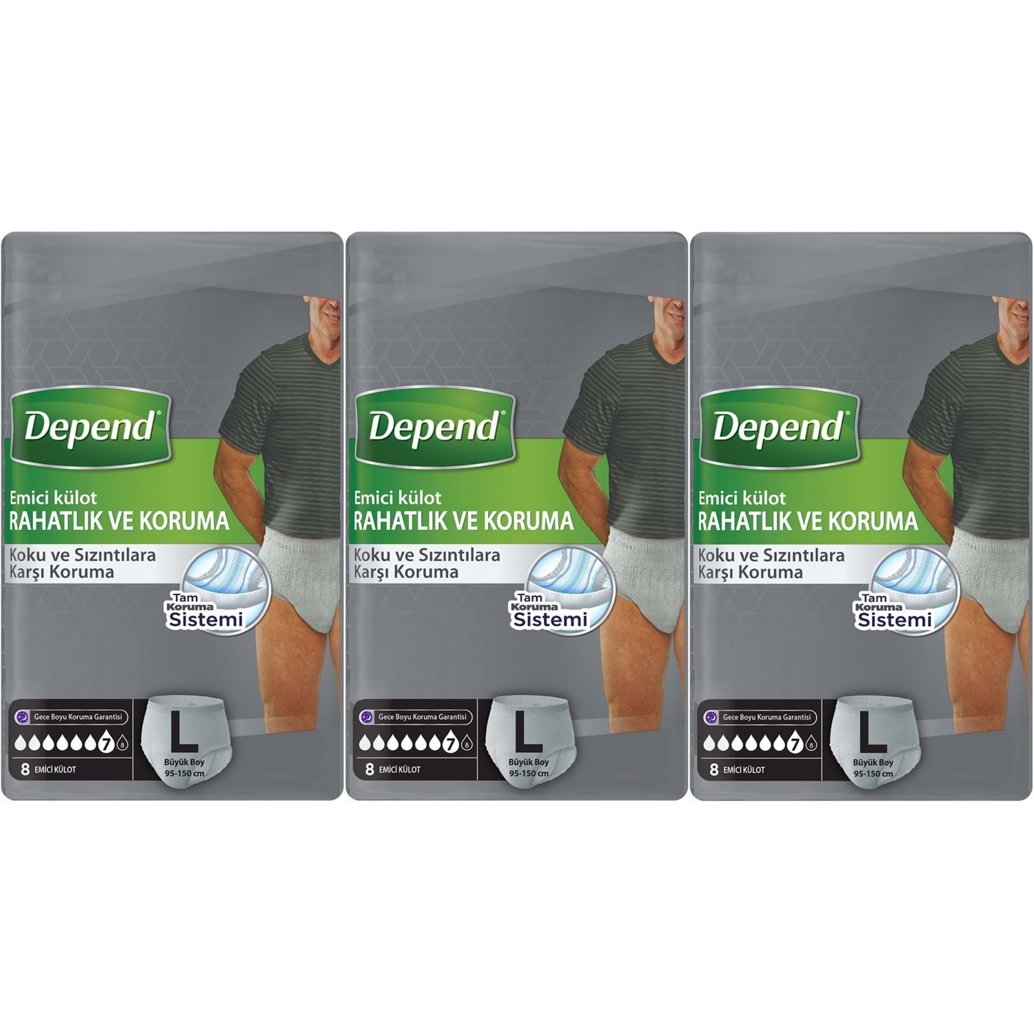 Depend Emici Külot Pants Hasta Bezi L - Büyük - Large Erkek 24 Adet (3PK*8)