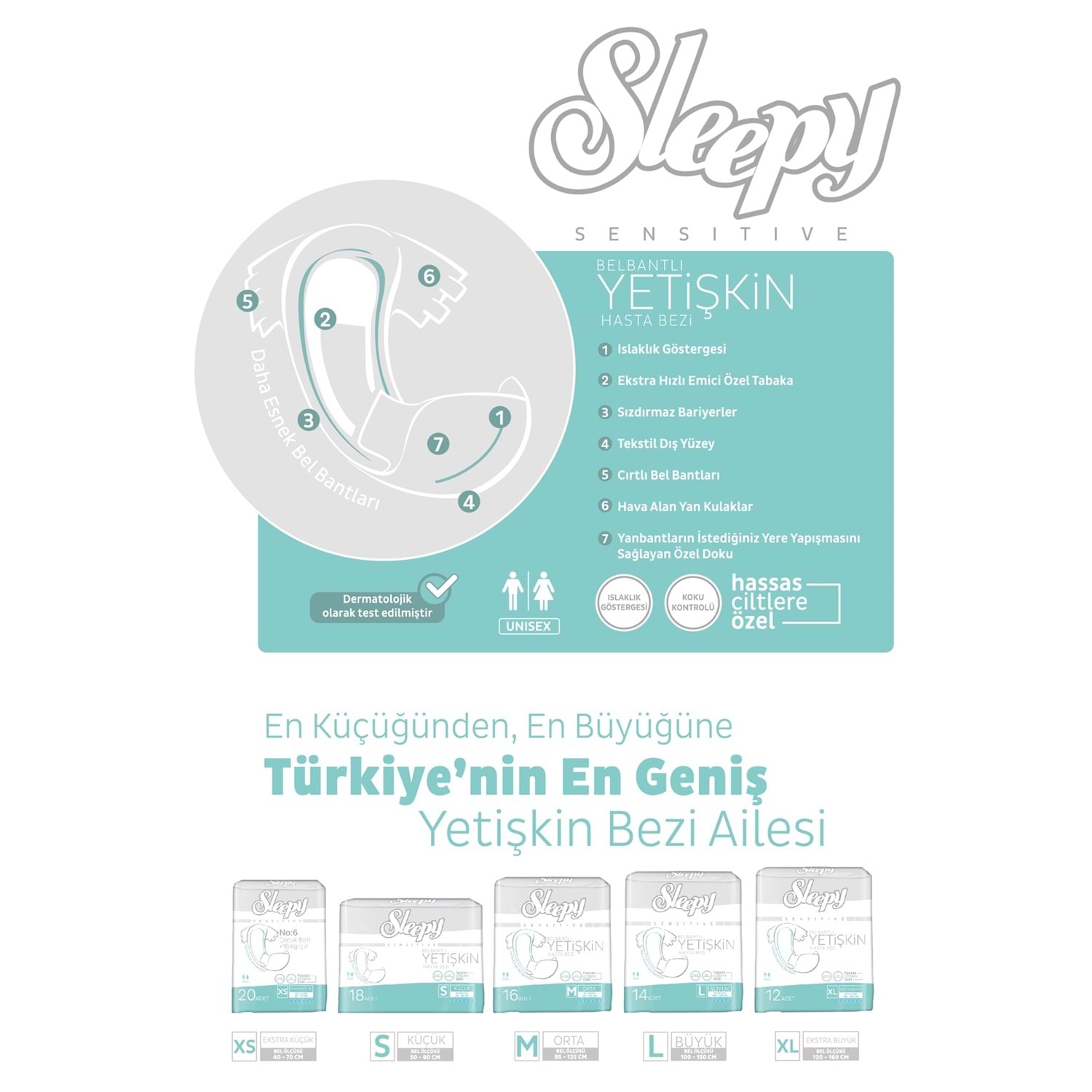 Sleepy Hasta Bezi Bel Bantlı Medium - Orta Boy 8 Adet Ekonomik Pk