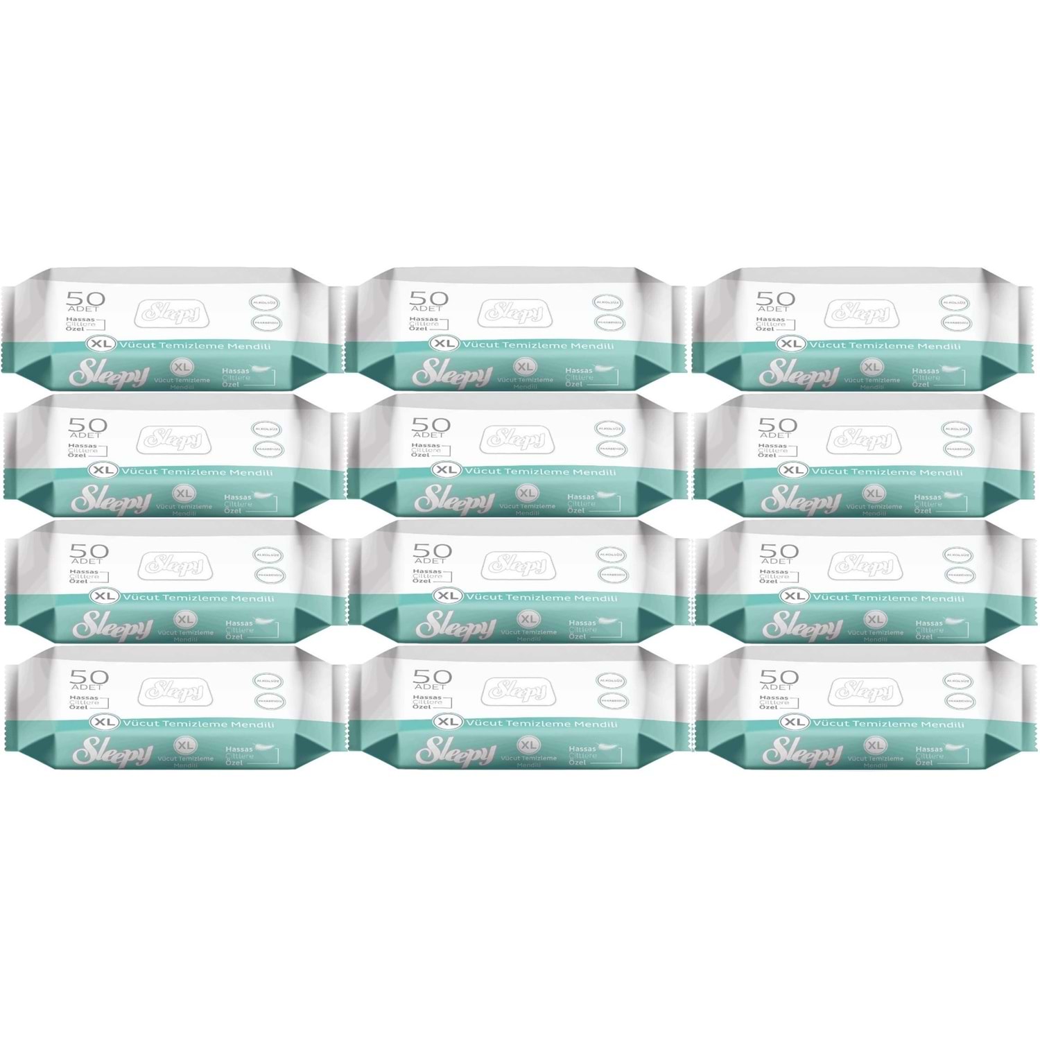 Sleepy Hasta Vücut Temizleme Islak Mendil Havlu 50 Yaprak XL 12 Li Set