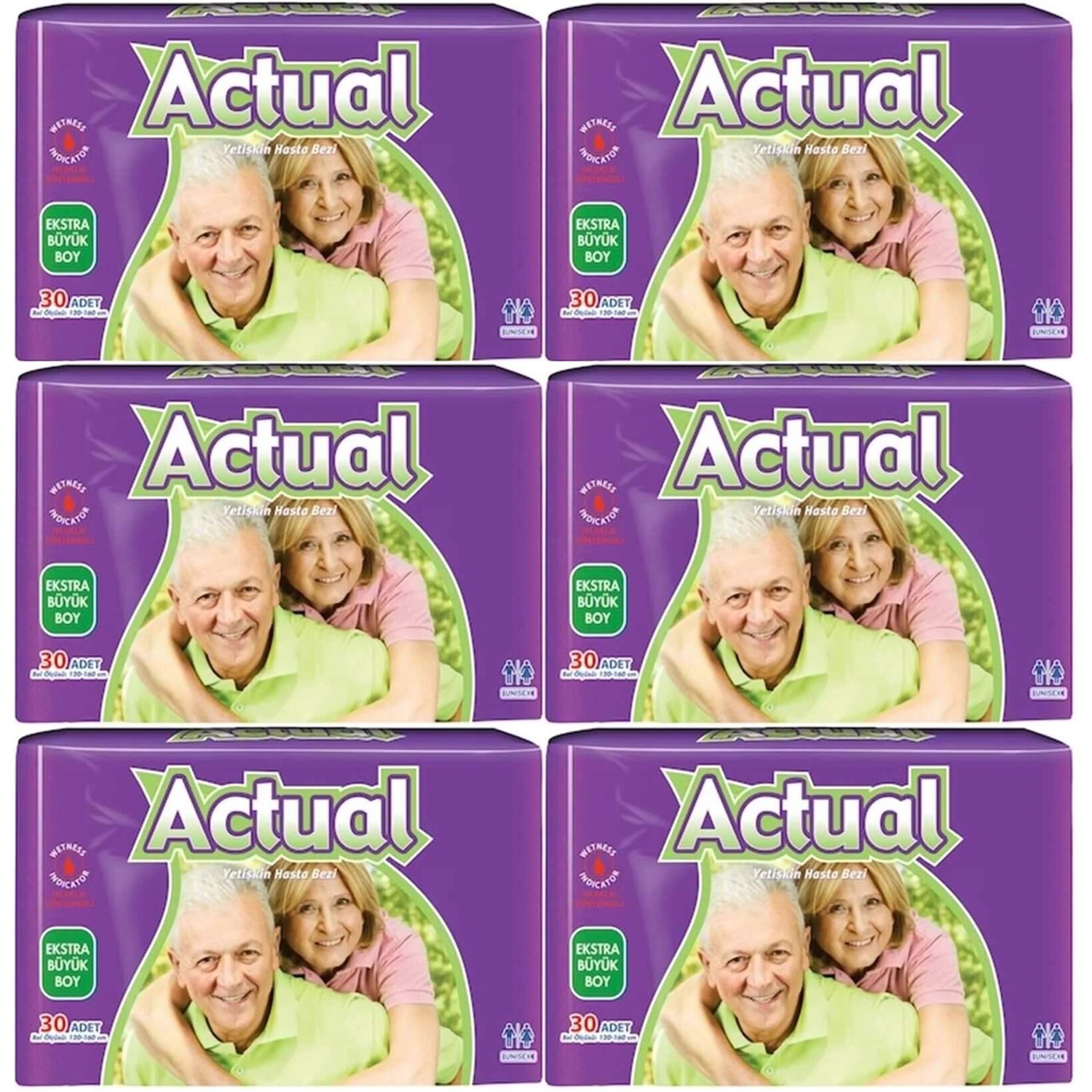 Actual Yetişkin Hasta Bezi Bel Bantlı XL - Ekstra Büyük - Extra Large 180 Adet (6PK*30)