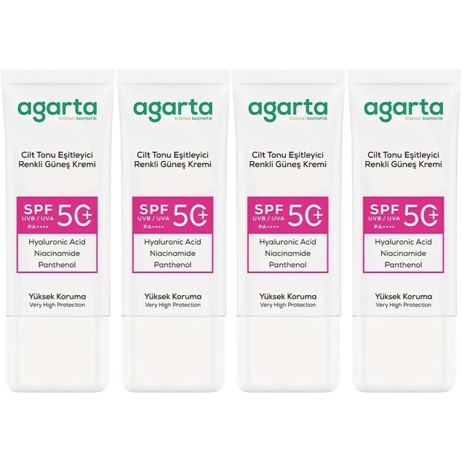 Agarta Cilt Tonu Eşitleyici Renkli Kapatıcı Etkili Spf+50 Faktör Güneş Kremi 50 ML (4 Lü Set)
