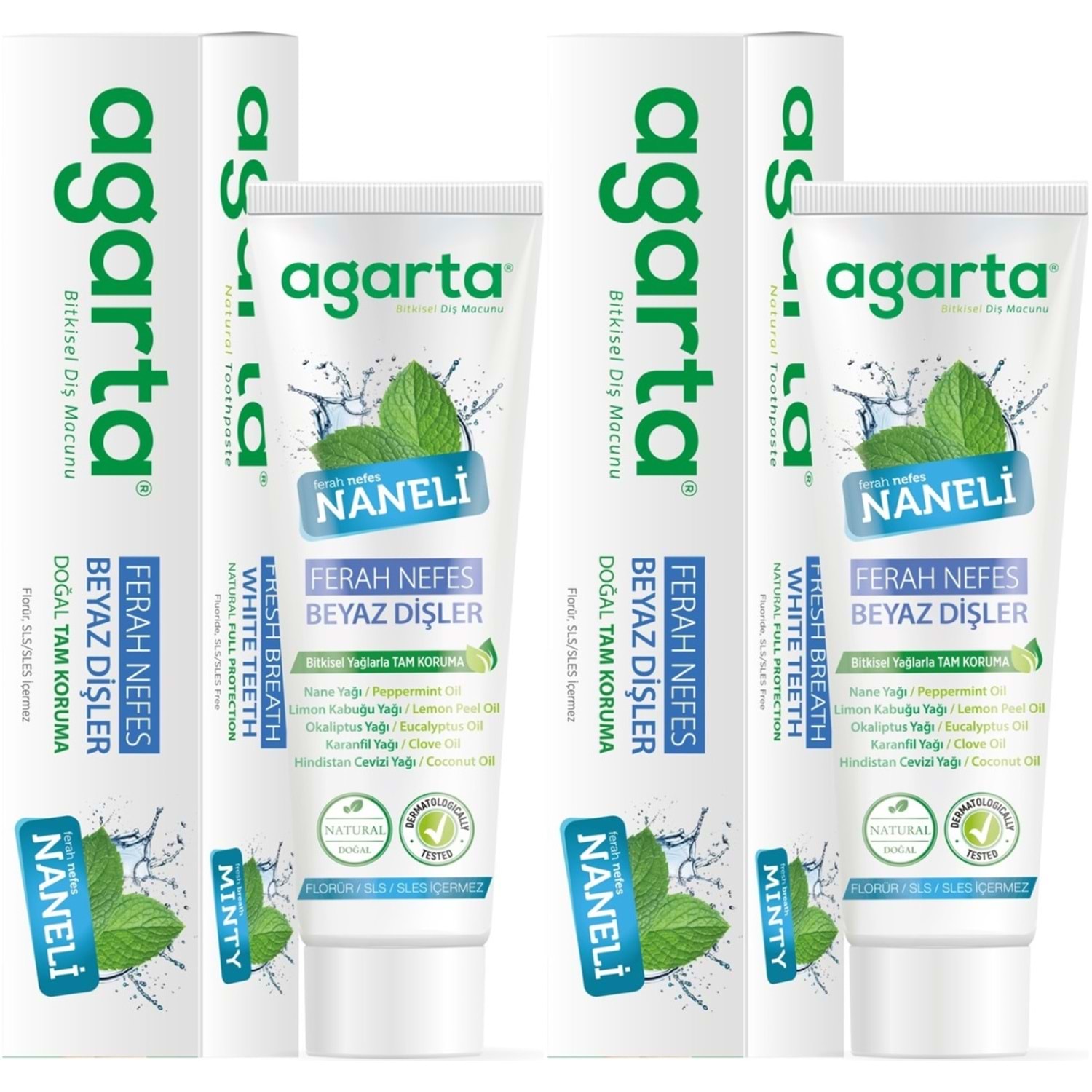 Agarta doğal nane özlü diş macunu Paraben,Sls, Florür, Florid, Triclosan, Formaldehit, yapay tatlandırıcı ve köpürtücü içermez.