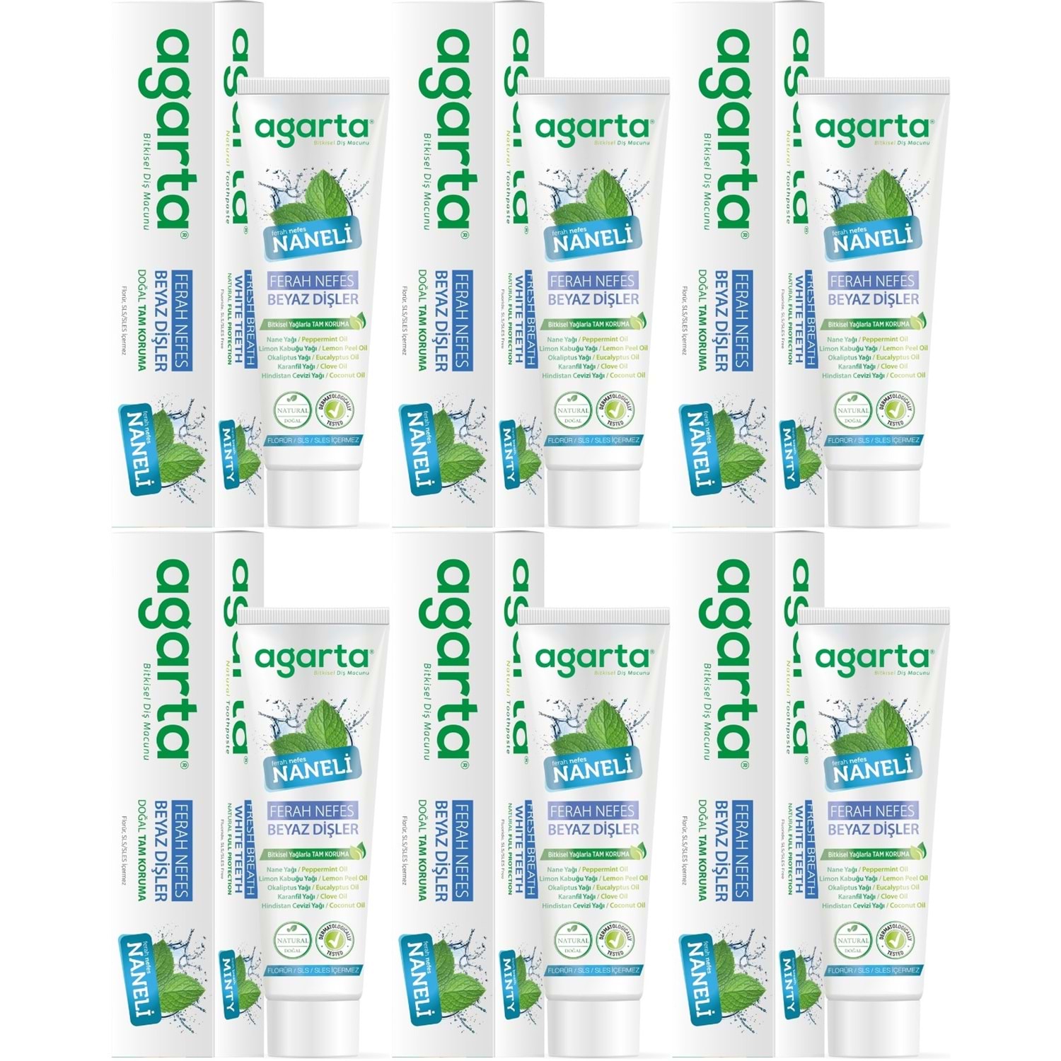 Agarta doğal nane özlü diş macunu Paraben,Sls, Florür, Florid, Triclosan, Formaldehit, yapay tatlandırıcı ve köpürtücü içermez.