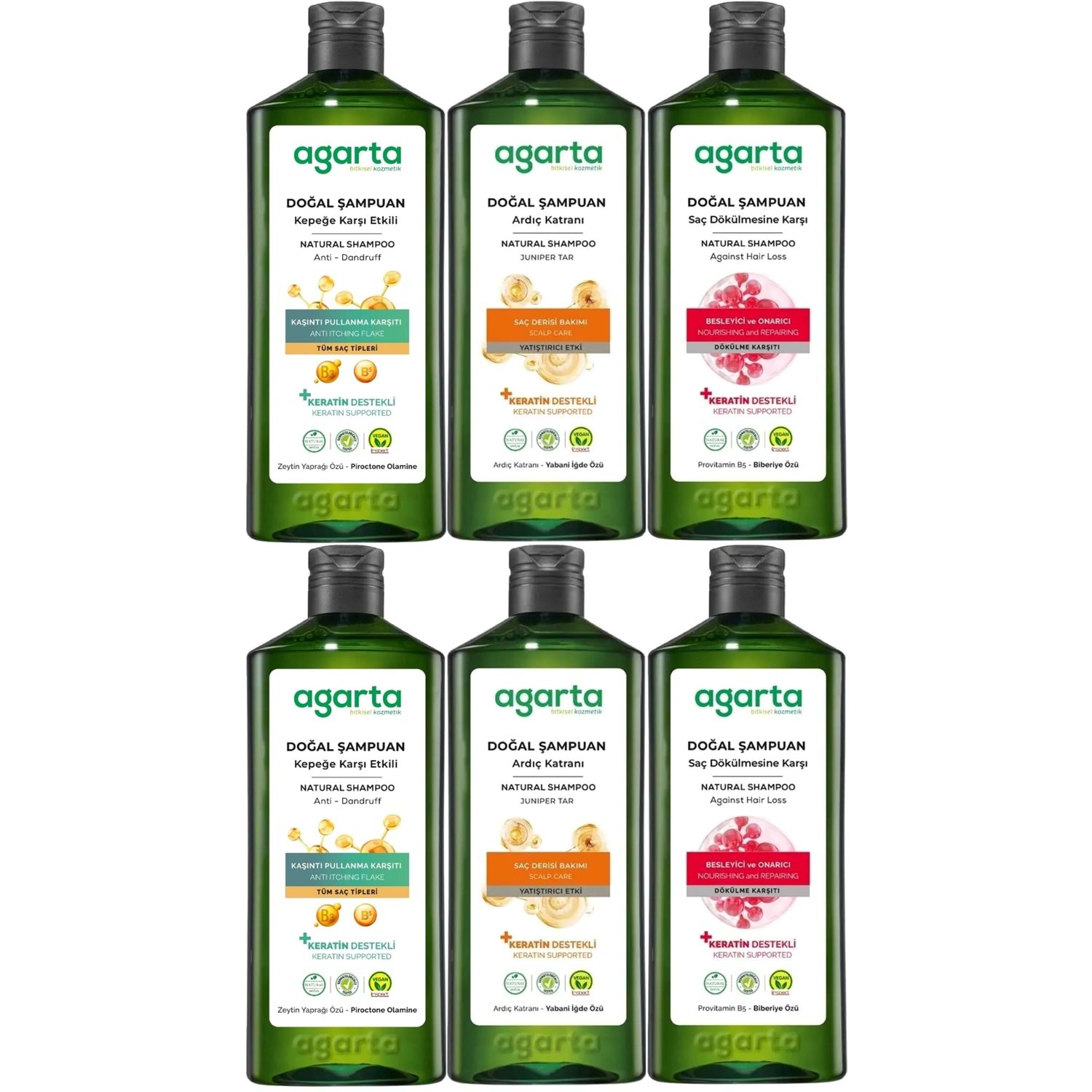 Agarta Doğal Şampuan 400 ML Kepek Karşıtı - Ardıç Katranı,Keratin - Saç Dökülmesine (6 Lı Karma Set)