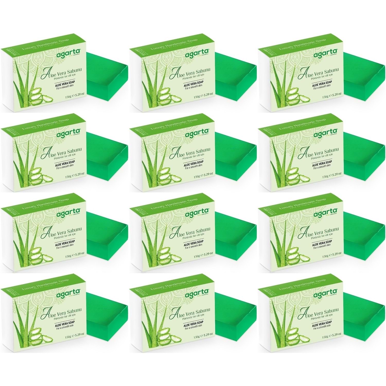 Agarta El Yapımı Doğal Sabun 150GR Aloe Vera (12 Li Set)