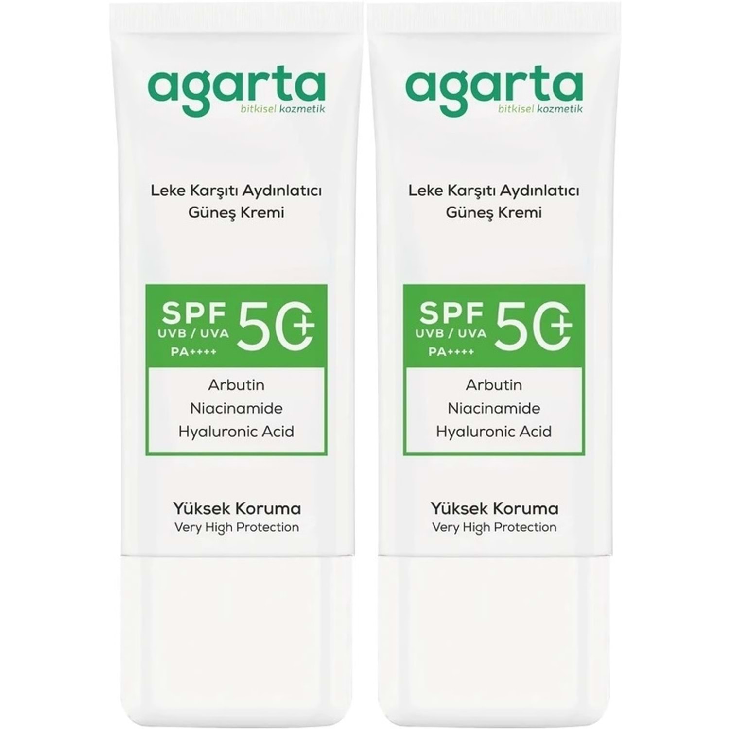 Agarta Leke Karşıtı Aydınlatıcı Spf+50 Faktör Yüz Güneş Kremi 50 ML (2 Li Set)