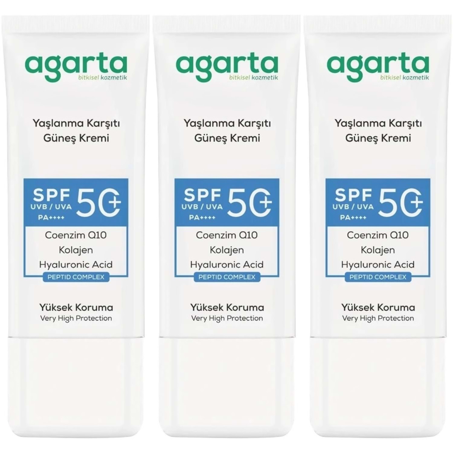 Agarta Yaşlanma Karşıtı Collagen Destekli Spf+50 Faktör Yüz Güneş Kremi 50 ML (3 Lü Set)