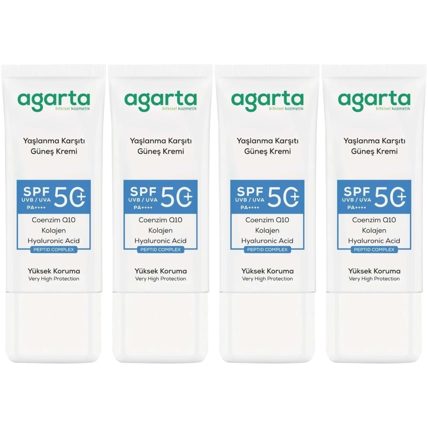 Agarta Yaşlanma Karşıtı Collagen Destekli Spf+50 Faktör Yüz Güneş Kremi 50 ML (4 Lü Set)