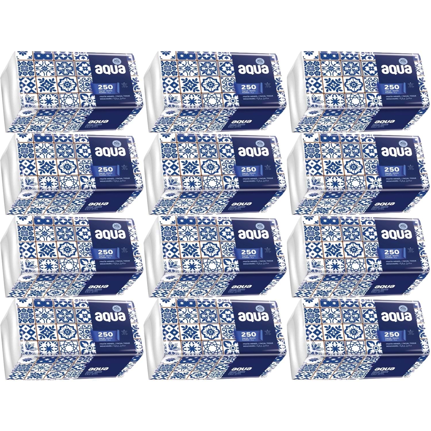 Aqua Pratik Mendil 250 Yaprak Tekli Pk (12 Li Set)