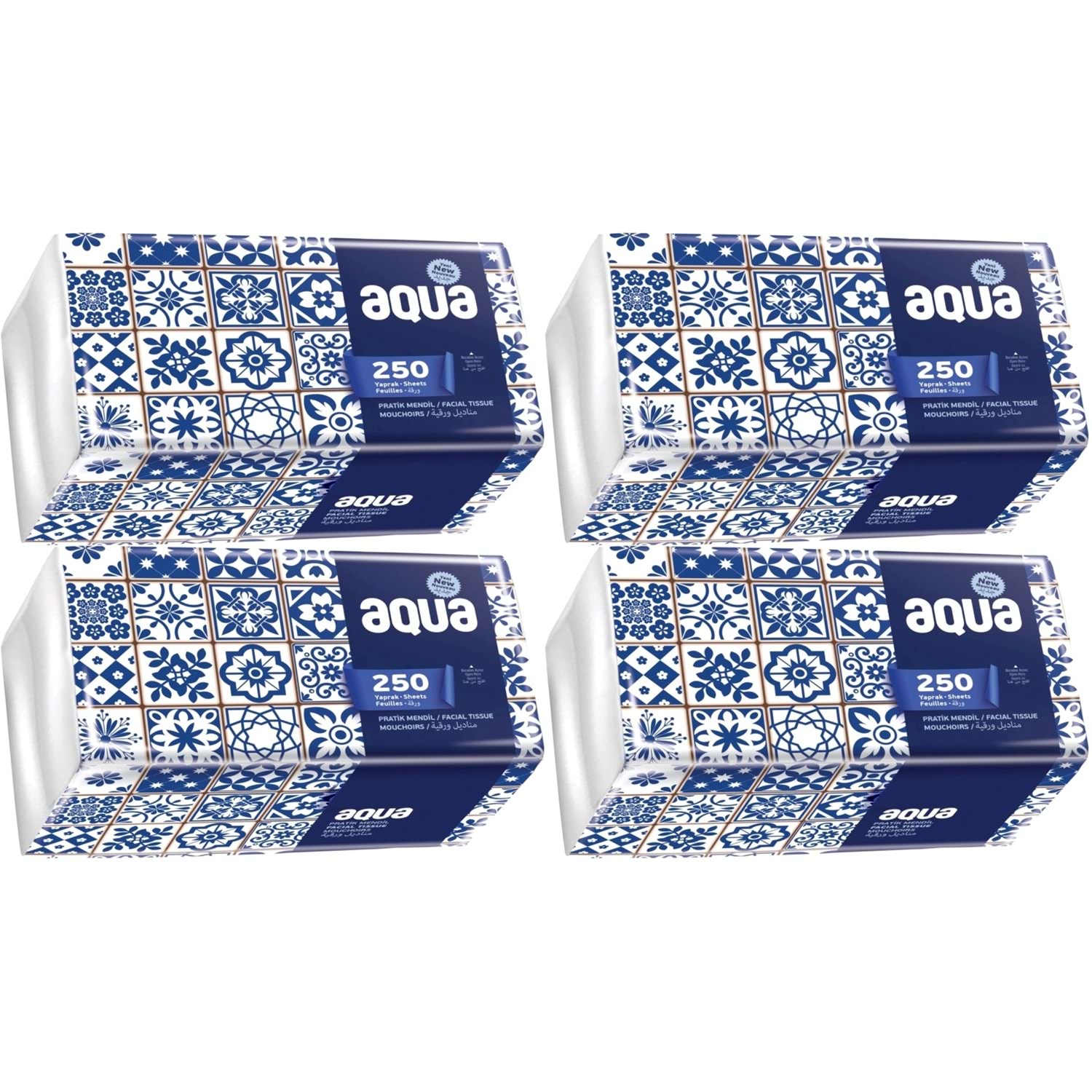 Aqua Pratik Mendil 250 Yaprak Tekli Pk (4 Lü Set)
