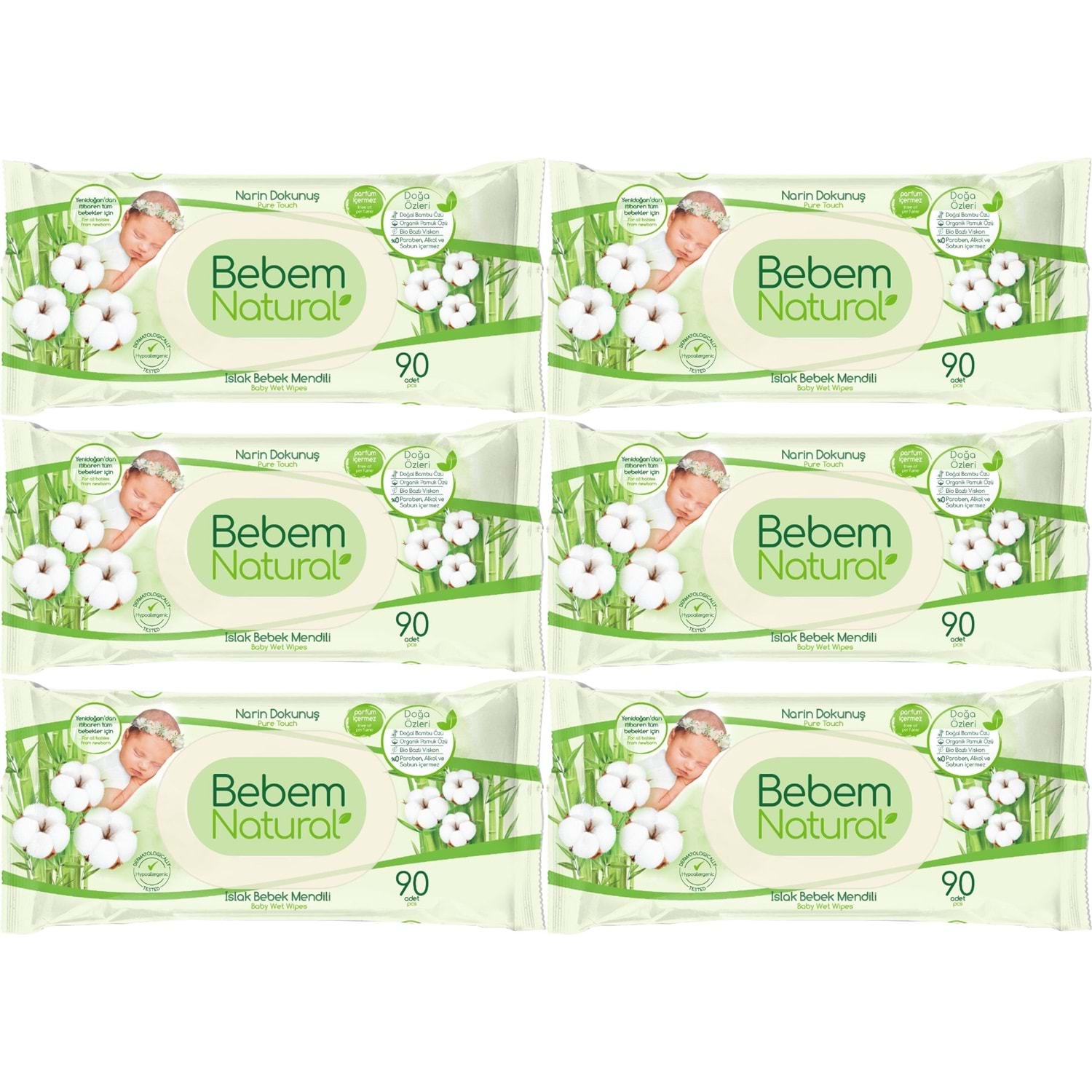 Bebem Natural Islak Bebek Mendili Narin Dokunuş / Yenidoğan 90 Yaprak Plastik Kapaklı 6 Lı Set