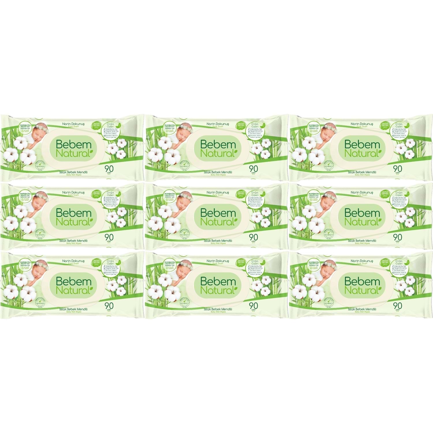 Bebem Natural Islak Bebek Mendili Narin Dokunuş / Yenidoğan 90 Yaprak Plastik Kapaklı 9 Lu Set