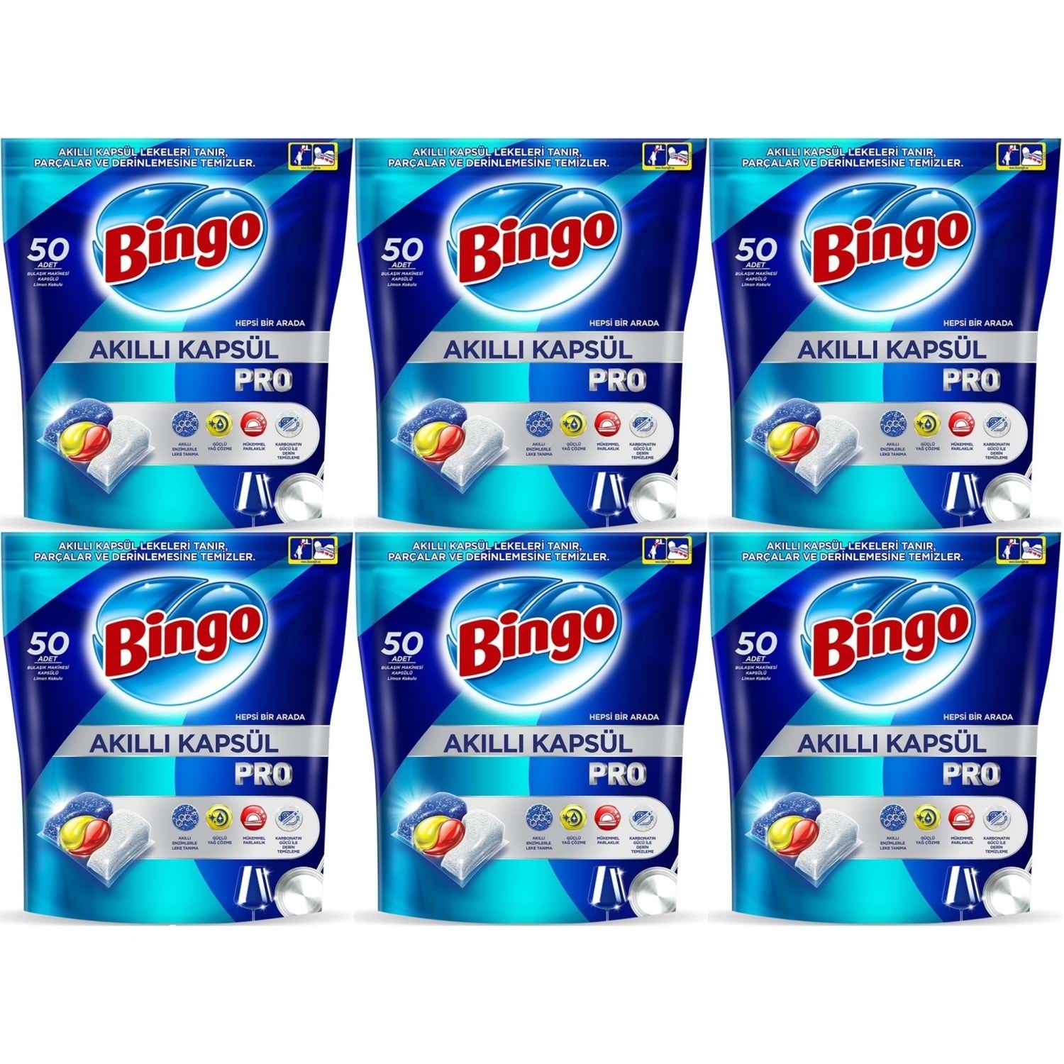 Bingo Akıllı Kapsül Pro Bulaşık Makinesi Deterjanı Tableti 300 Adet Limon Kokulu (6PK*50)