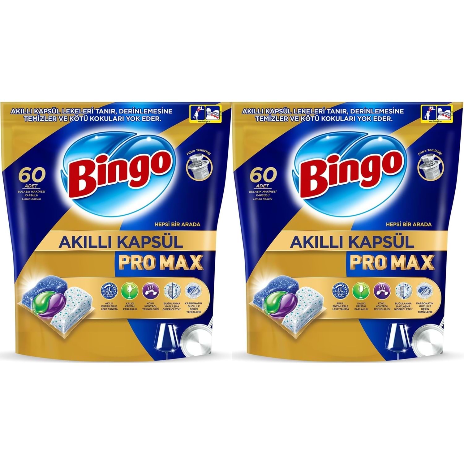 - Bingo Akıllı Kapsül Pro Max Bulaşık Makinesi Deterjanı Tableti 60 lı Bingo Akıllı Kapsül Pro Max Hepsi Bir Arada Bulaşık makineleri için özel olarak geliştirilmiş formülü sayesinde kusursuz temizlik ve kalıcı kristal parlaklık sağlar.