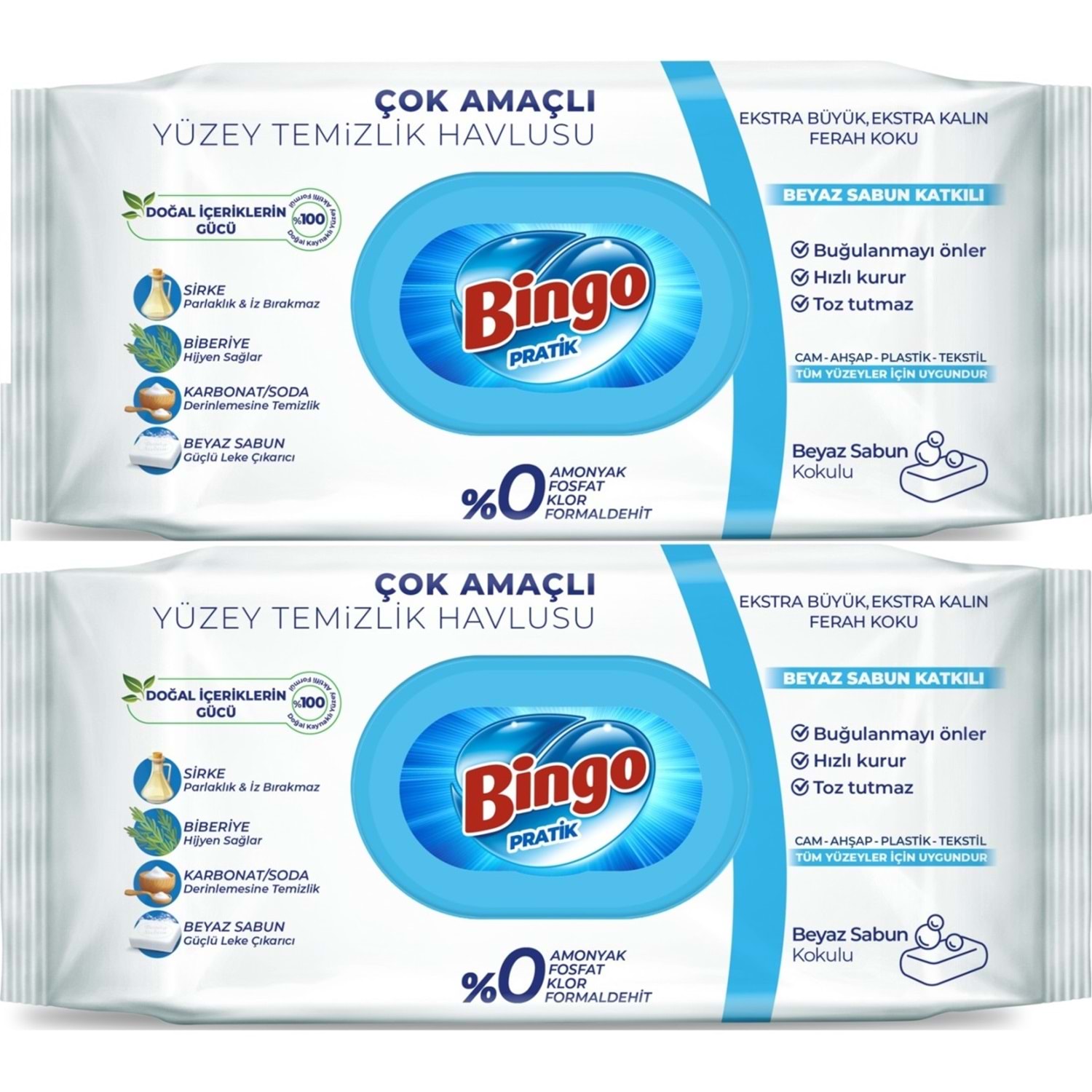 Bingo Clean Yüzey Temizlik Havlusu 96 Yaprak Beyaz Sabun Plastik Kapaklı (2 Li Set) 192 Yaprak