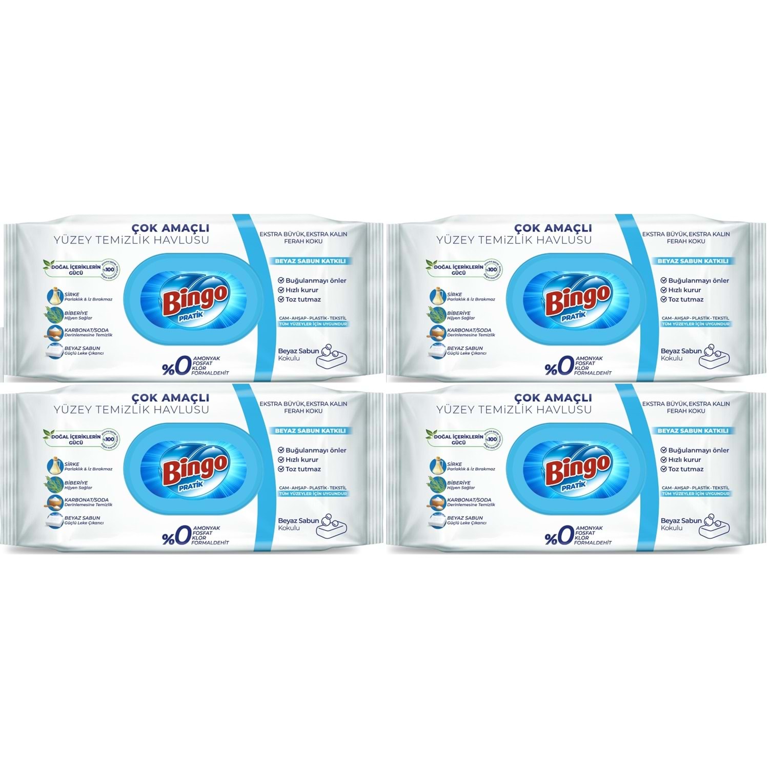 Bingo Clean Yüzey Temizlik Havlusu 96 Yaprak Beyaz Sabun Plastik Kapaklı (4 Lü Set) 384 Yaprak