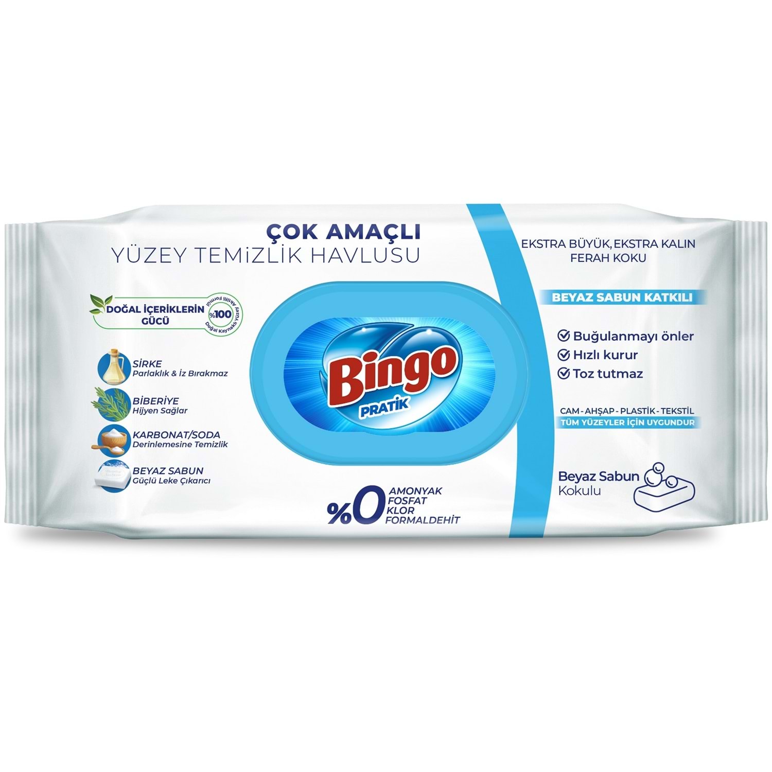 Bingo Clean Yüzey Temizlik Havlusu 96 Yaprak Beyaz Sabun Plastik Kapaklı
