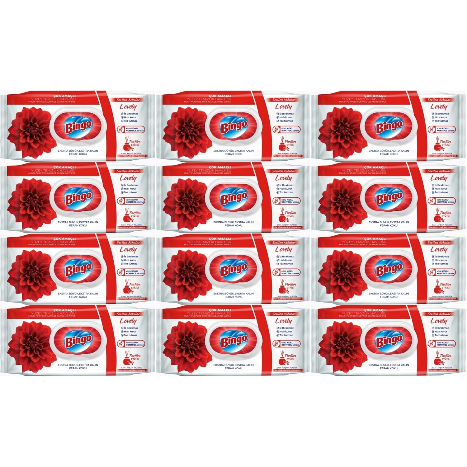 Bingo Clean Yüzey Temizlik Havlusu 96 Yaprak Sevilen Kokular Lovely - Gül (12 Li Set) 1152 Yaprak