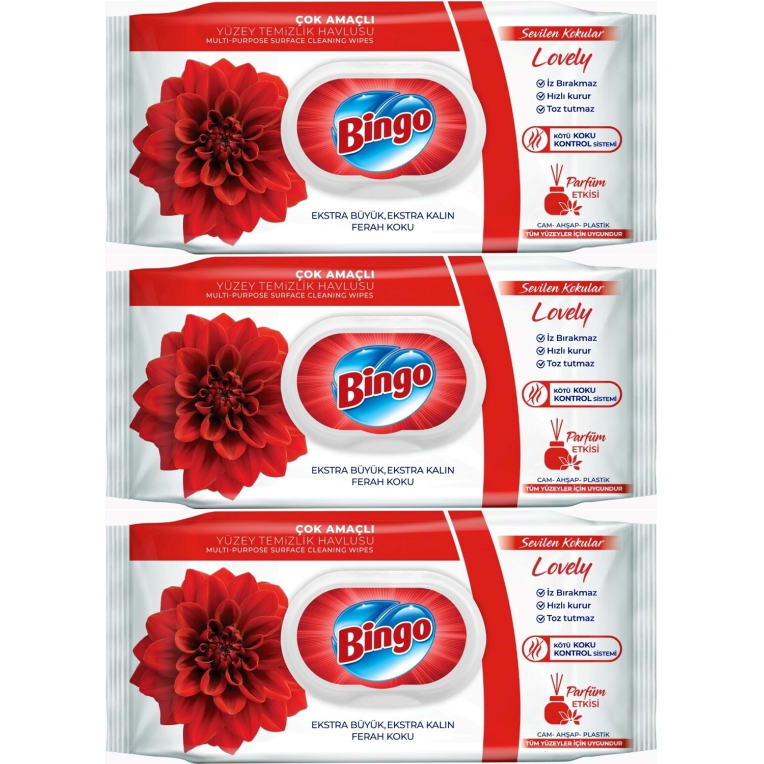 Bingo Clean Yüzey Temizlik Havlusu 96 Yaprak Sevilen Kokular Lovely - Gül (3 Lü Set) 288 Yaprak