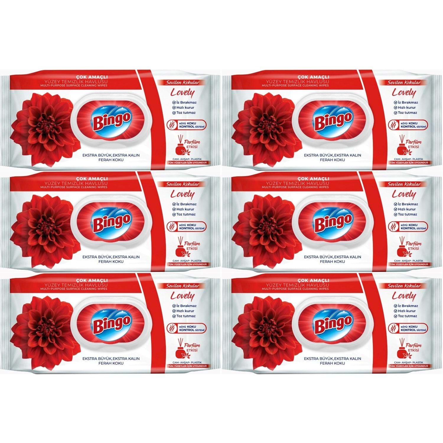 Bingo Clean Yüzey Temizlik Havlusu 96 Yaprak Sevilen Kokular Lovely - Gül (6 Lı Set) 576 Yaprak
