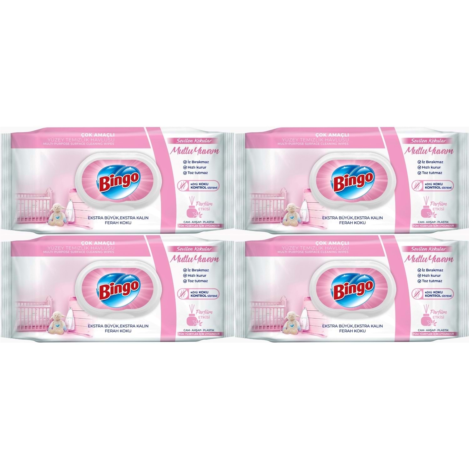 Bingo Clean Yüzey Temizlik Havlusu 96 Yaprak Sevilen Kokular Mutlu Yuvam (4 Lü Set) 384 Yaprak