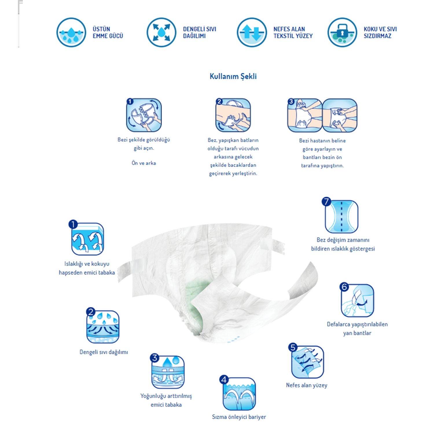 Çocuklar için tasarlanan bel bantlı bakım bezi, pratik kullanımı sayesinde bakım sürecini kolaylaştırmaya yardımcı olur. Yumuşak yapısı ve rahat tasarımı ile günlük kullanımda konfor sunar.