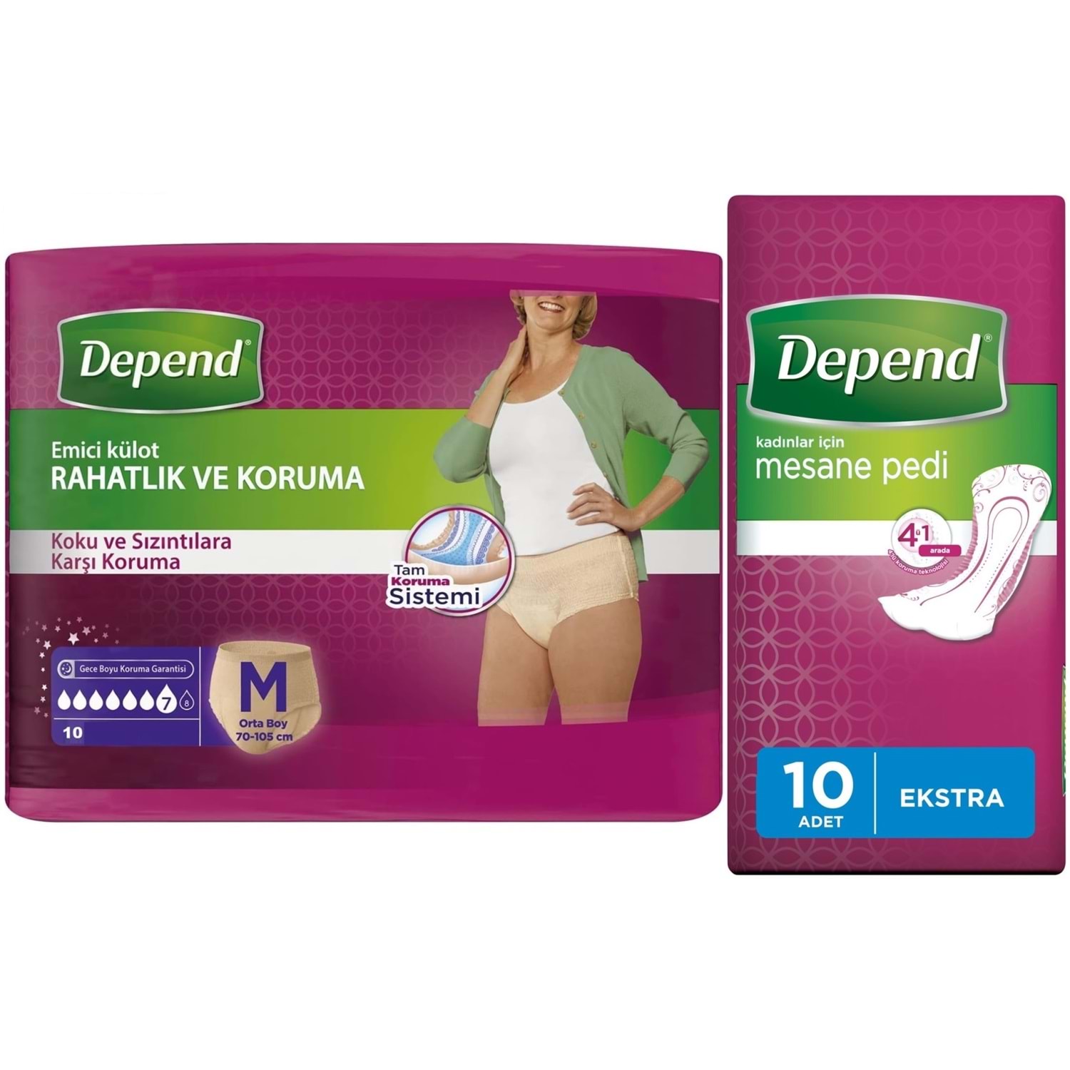 Depend Emici Külot Lohusa Pedi M- Medium - Orta Kadın (10 Lu) + Mesane Pedi Kadın Ekstra (10 Lu)