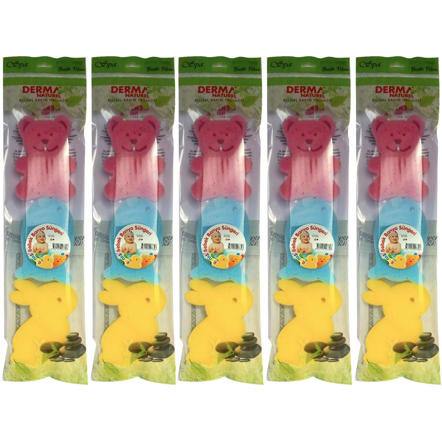 Derma Naturel 3 Lü Renkli Bebek Banyo Süngeri (5 Li Set)