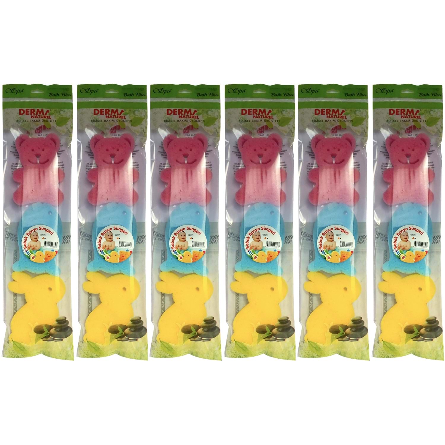 Derma Naturel 3 Lü Renkli Bebek Banyo Süngeri (6 Lı Set)