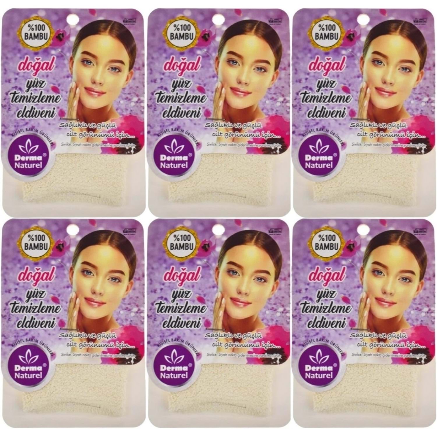 Derma Naturel Bambu Yüz Temizleme Eldiveni MS-32 (6 Lı Set)