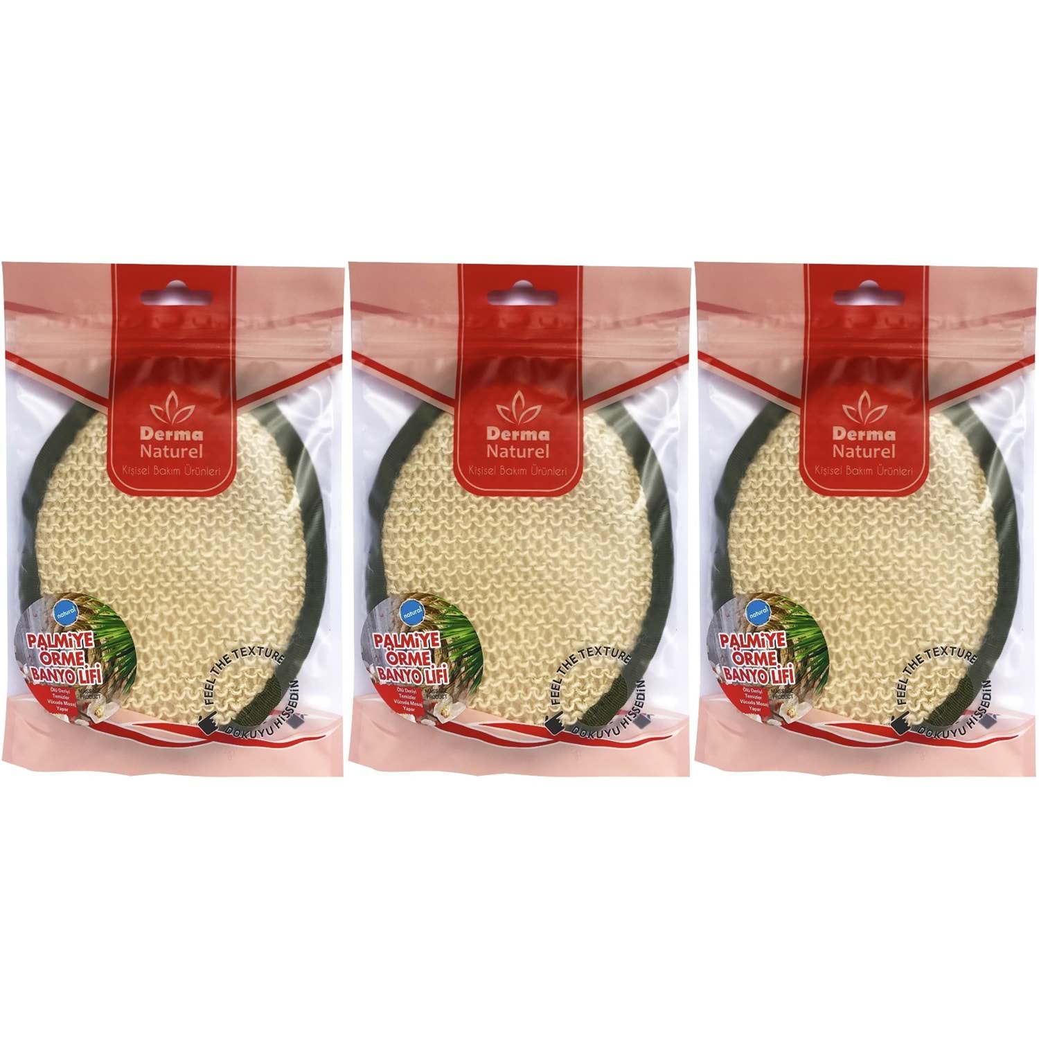 Derma Naturel Örme Banyo Yüz Lifi (15*24CM) MS-02 (3 Lü Set)