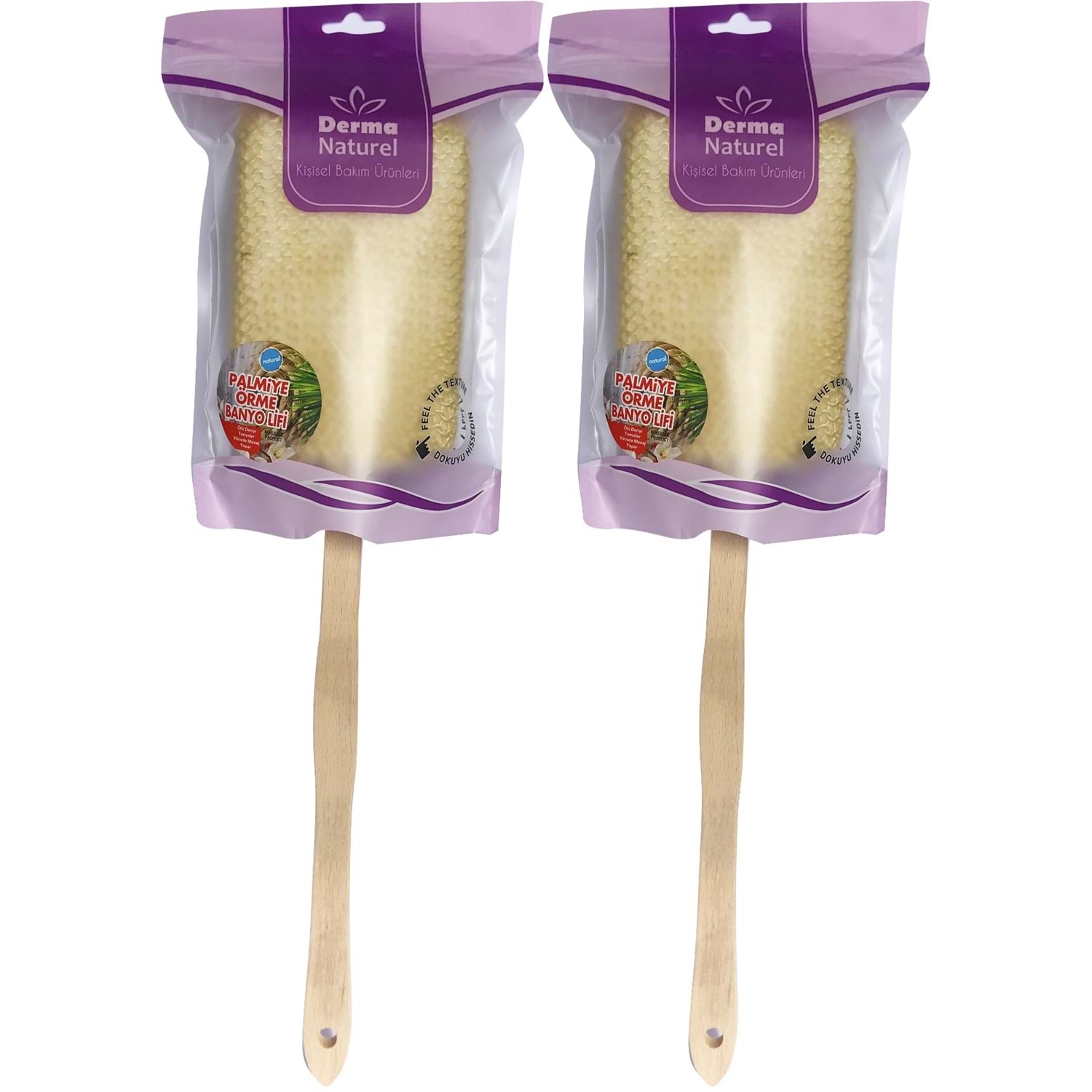 Derma Naturel Palmiye Örme Sopalı Banyo Sırt Lifi (8*24CM) MS-09 (2 Li Set)