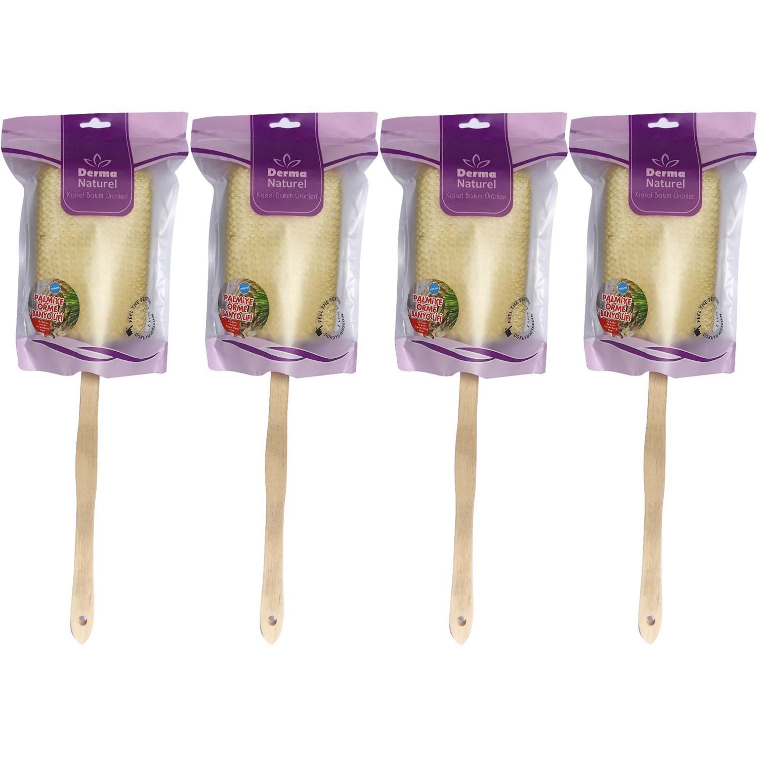 Derma Naturel Palmiye Örme Sopalı Banyo Sırt Lifi (8*24CM) MS-09 (4 Lü Set)