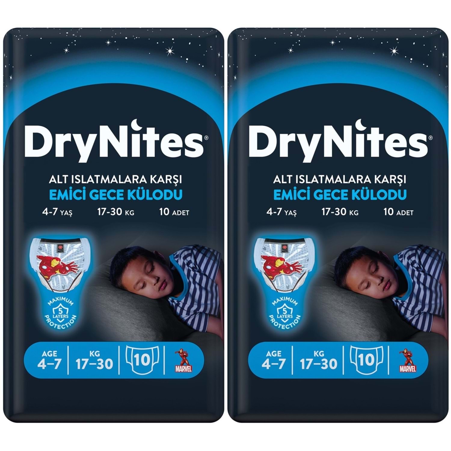 Gece alt ıslatmaları için özel olarak tasarlanmış Drynites Emici Gece Külotları, 4-7 yaş arası erkek çocukların gece boyunca kuru ve güvende hissetmesini sağlar. İç çamaşırına benzeyen ince ve esnek yapısıyla çocuğunuzun konforunu bozmadan hareket özgürlüğü sunar.