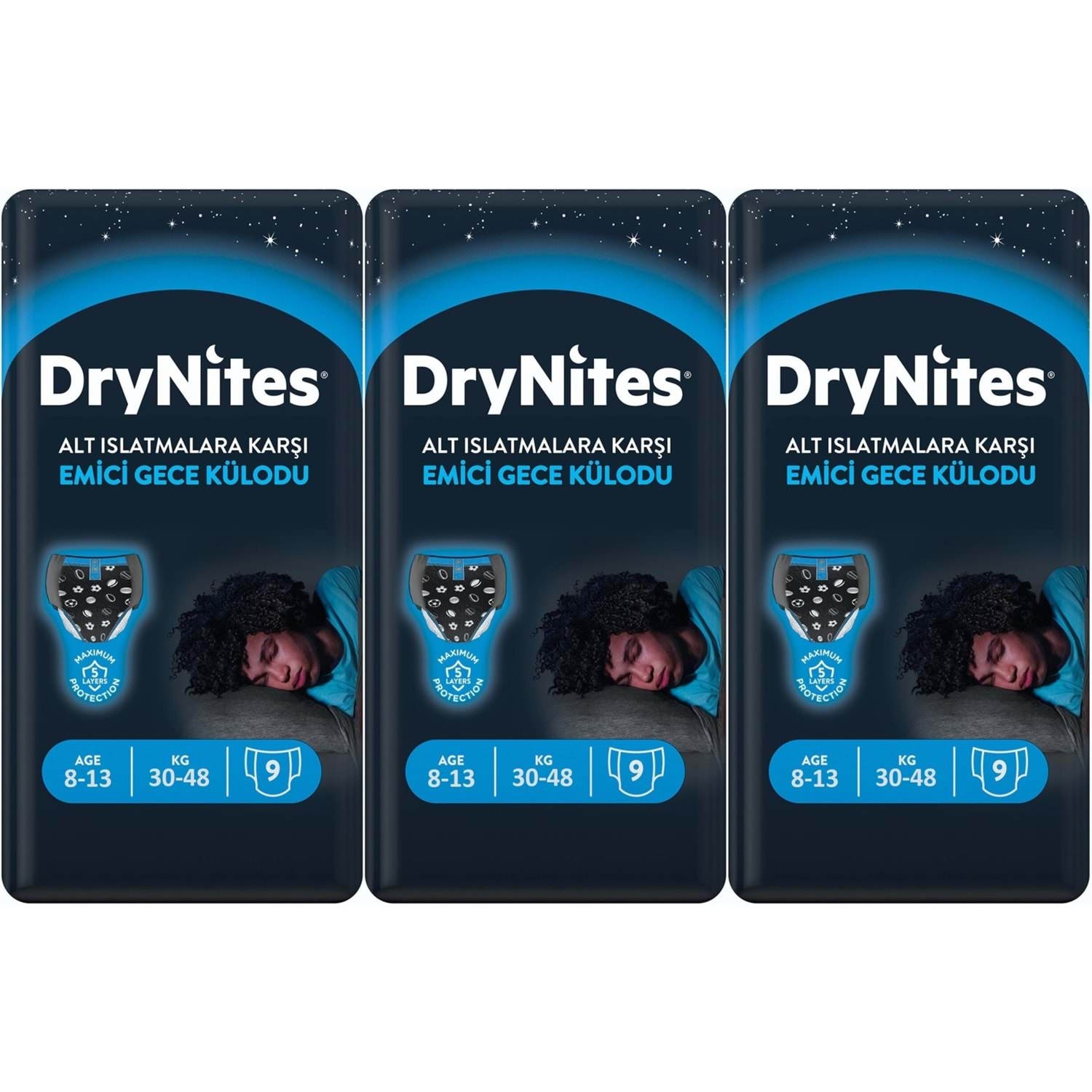 Drynites Emici Gece Külodu/Külot Bez Erkek 8-13 Yaş (30-48KG) Large 27 Adet (3PK*9) (Alt Islatmalara Karşı)