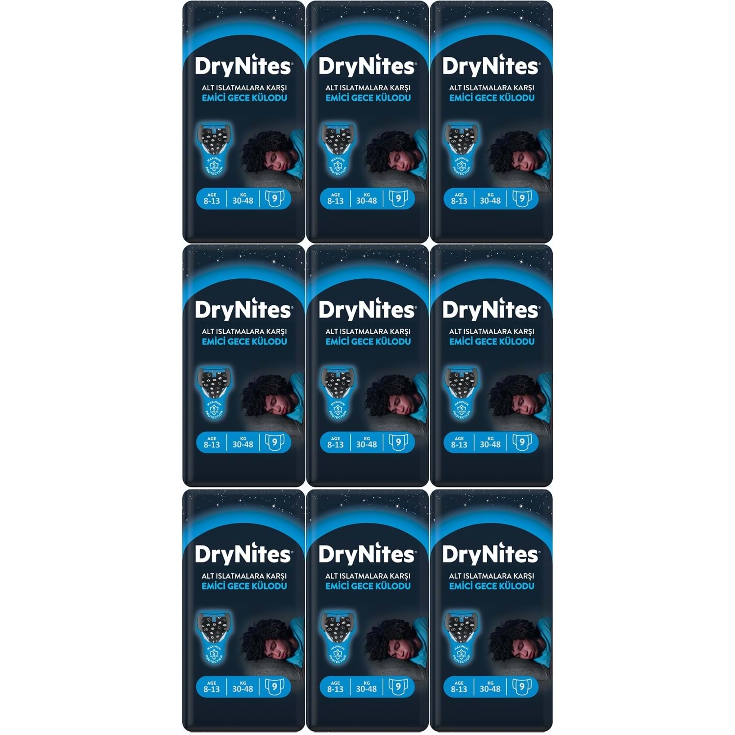 Drynites Emici Gece Külodu/Külot Bez Erkek 8-13 Yaş (30-48KG) Large 81 Adet (9PK*9) (Alt Islatmalara Karşı)