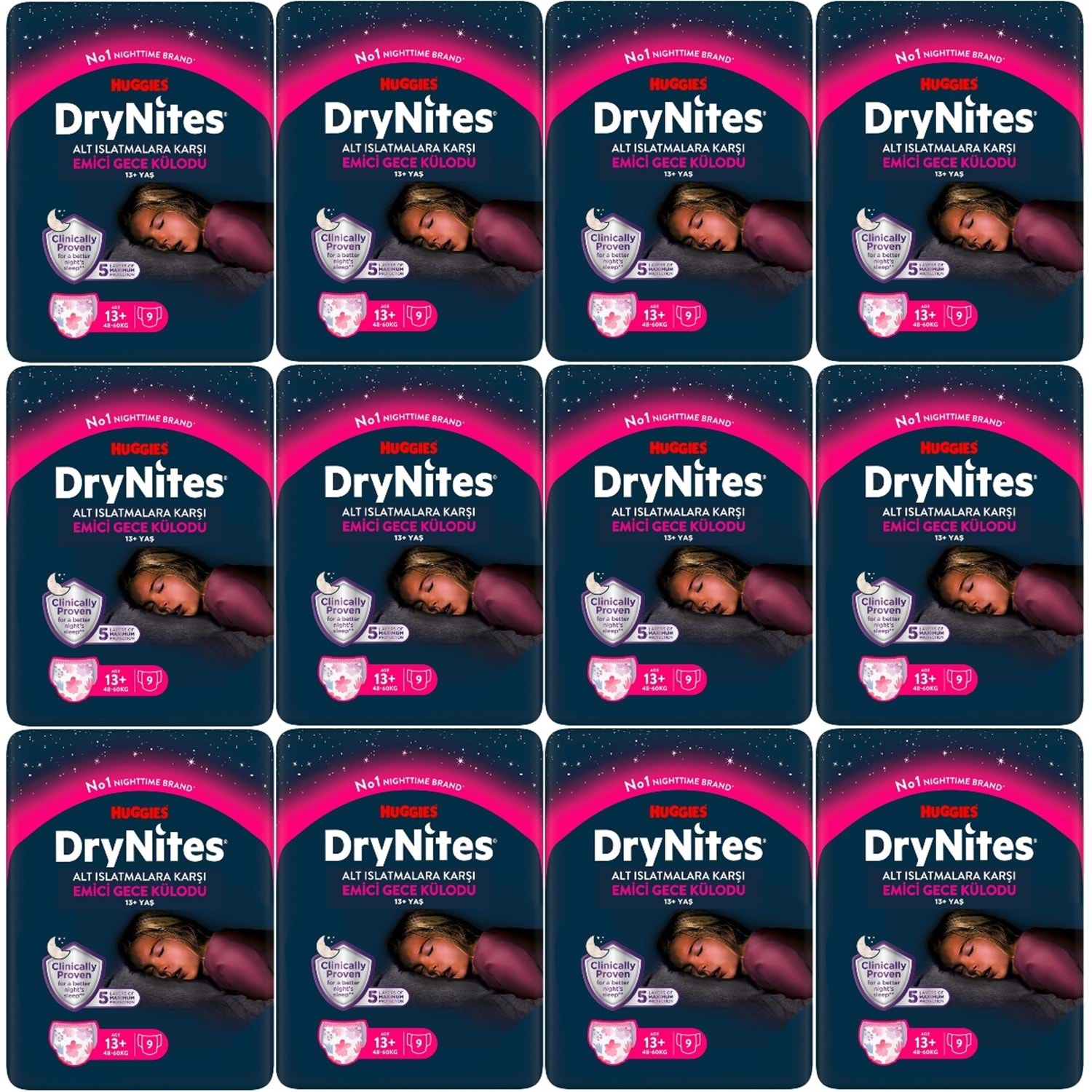 Drynites Emici Gece Külodu/Külot Bez Kız 13+ Yaş (48-60KG) X Large 108 Adet (12PK*9) (Alt Islatmalara Karşı)