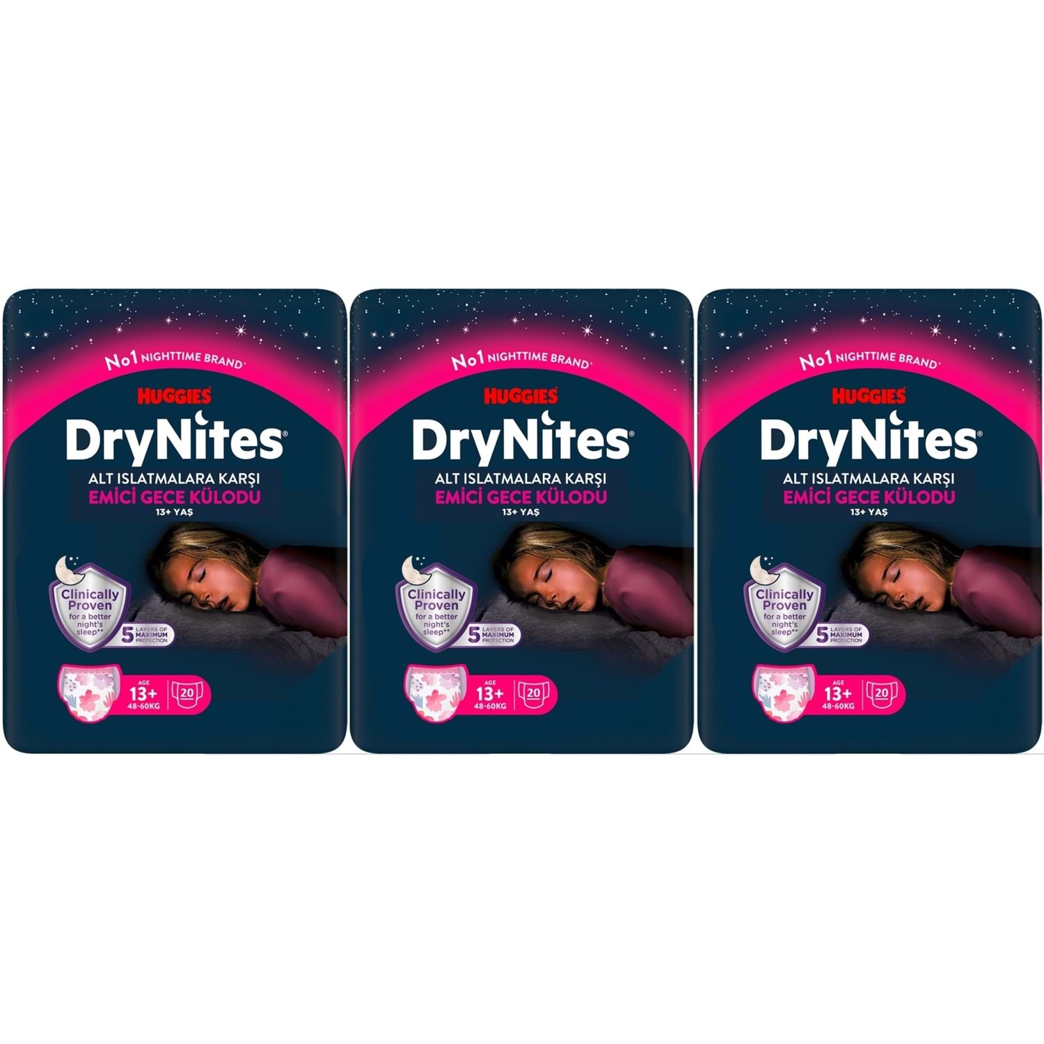 Drynites Emici Gece Külodu/Külot Bez Kız 13+ Yaş (48-60KG) X Large 60 Adet Mega Pk (3PK*20) (Alt Islatmalara Karşı)