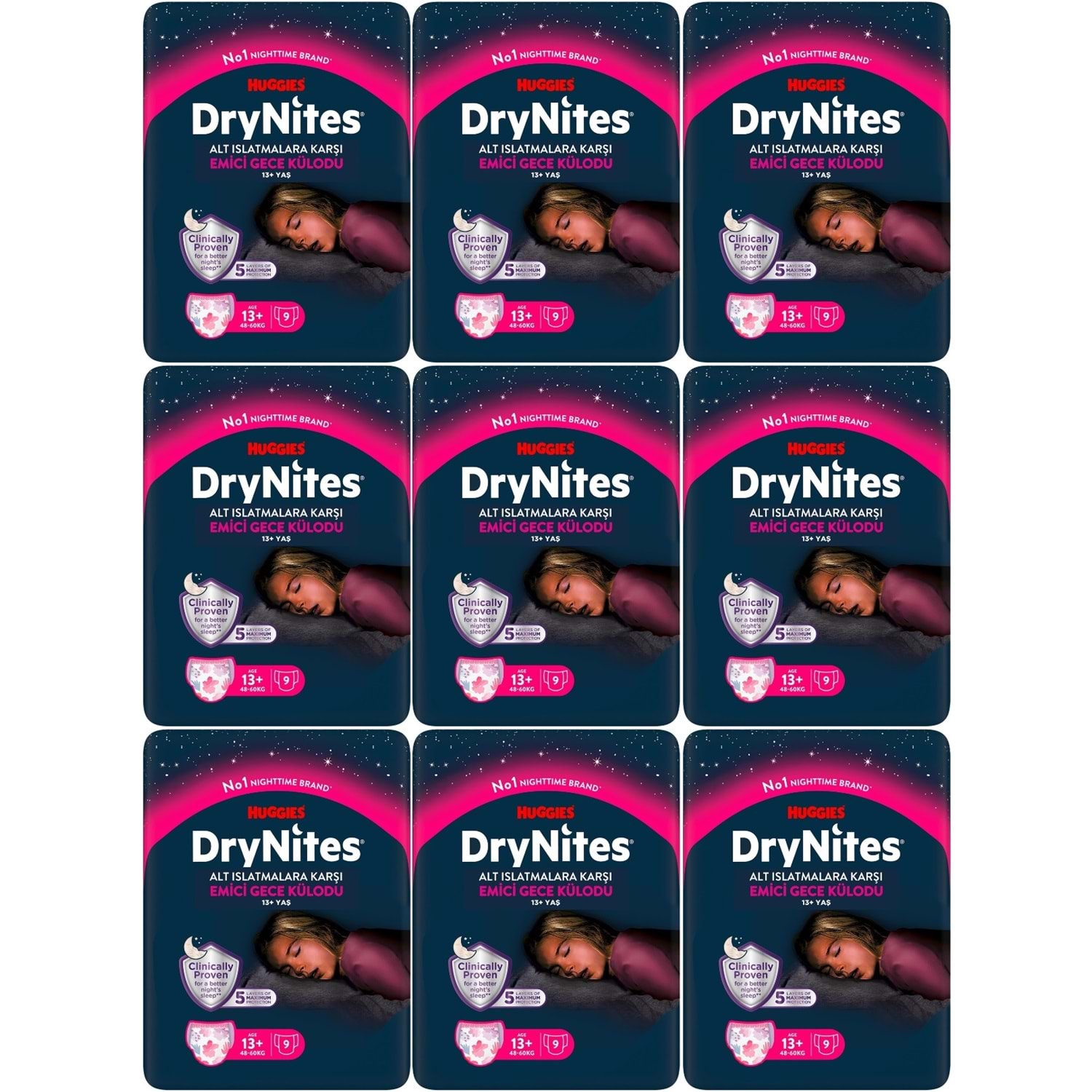 Drynites Emici Gece Külodu/Külot Bez Kız 13+ Yaş (48-60KG) X Large 81 Adet (9PK*9) (Alt Islatmalara Karşı)