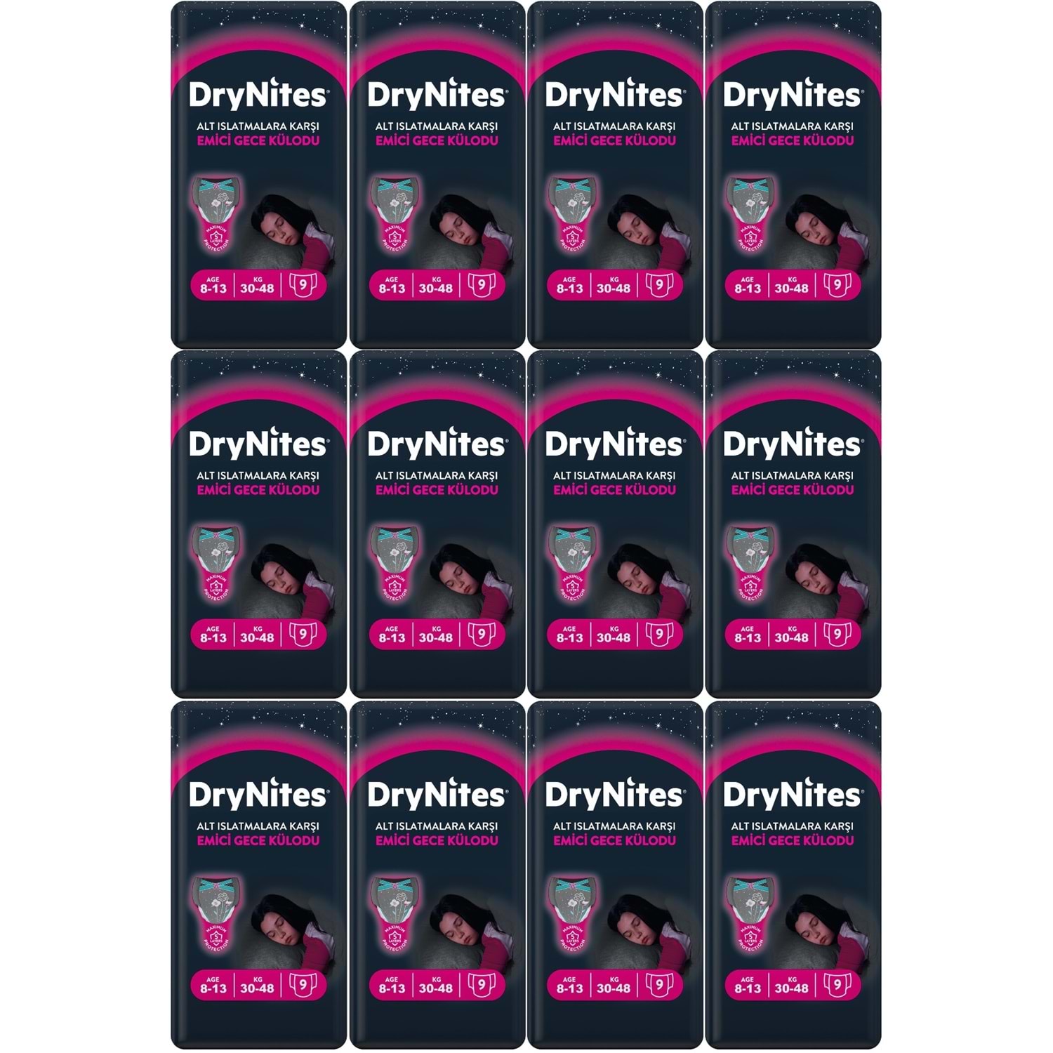 Drynites Emici Gece Külodu/Külot Bez Kız 8-13 Yaş (30-48KG) Large 108 Adet (12PK*9) (Alt Islatmalara Karşı)