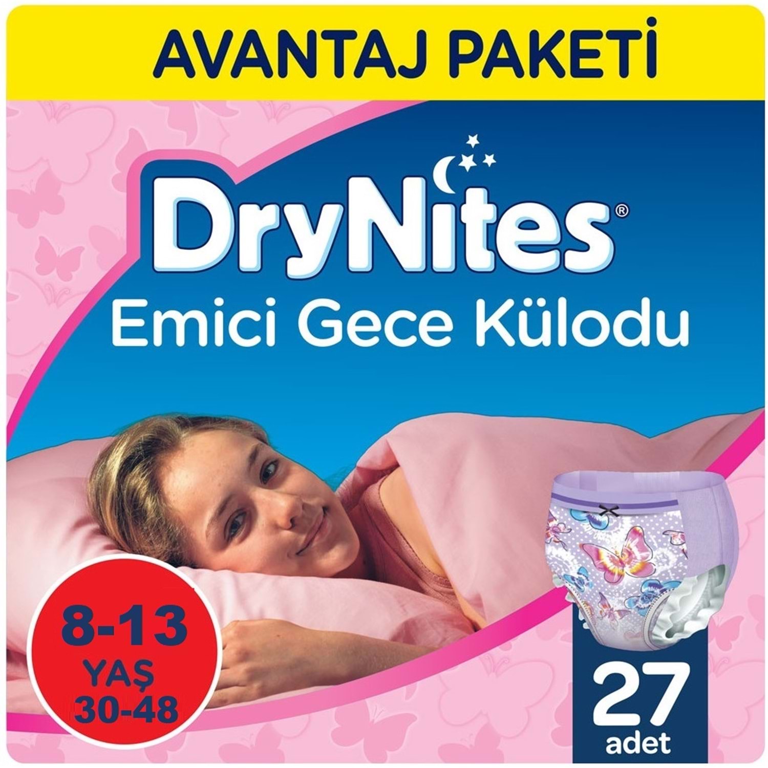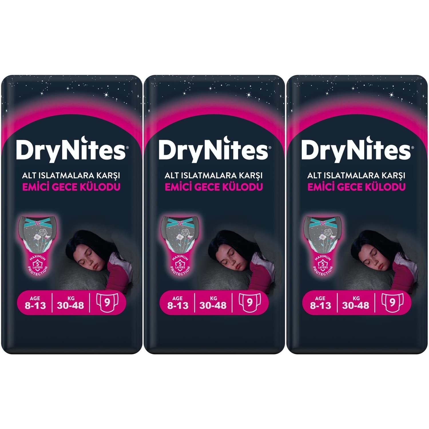 Drynites Emici Gece Külodu/Külot Bez Kız 8-13 Yaş (30-48KG) Large 27 Adet (3PK*9) (Alt Islatmalara Karşı)