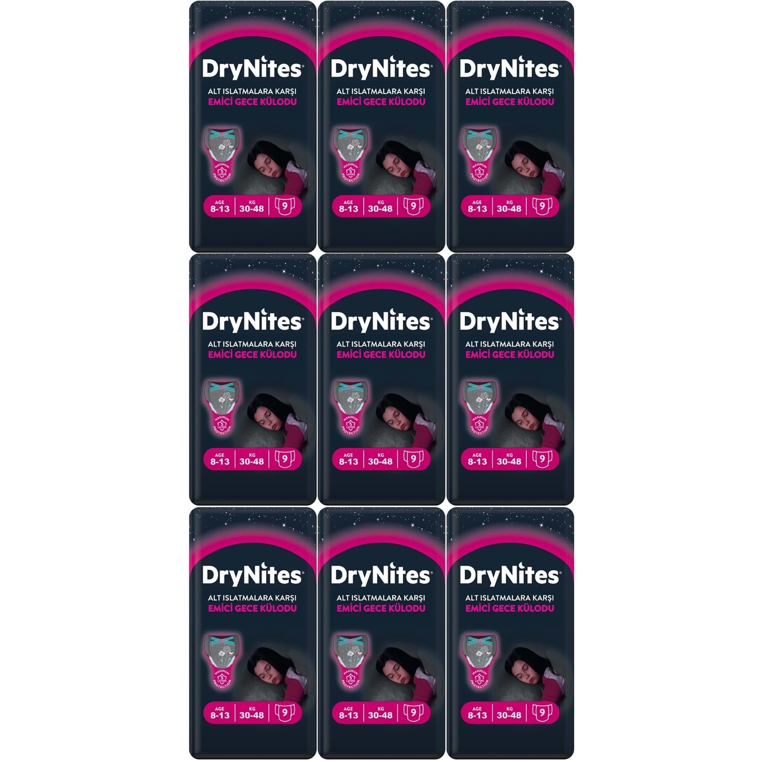 Drynites Emici Gece Külodu/Külot Bez Kız 8-13 Yaş (30-48KG) Large 81 Adet (9PK*9) (Alt Islatmalara Karşı)